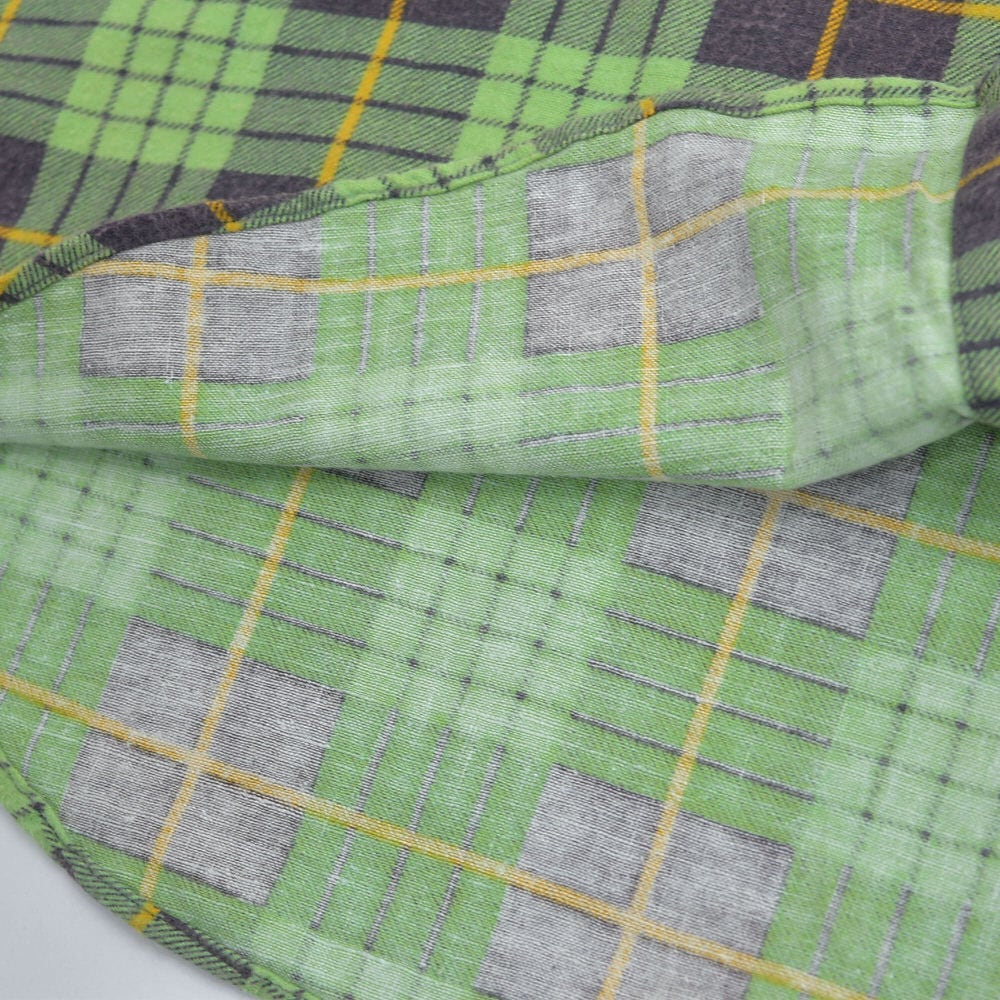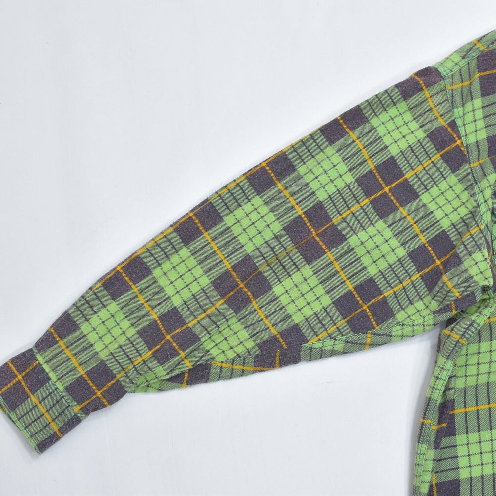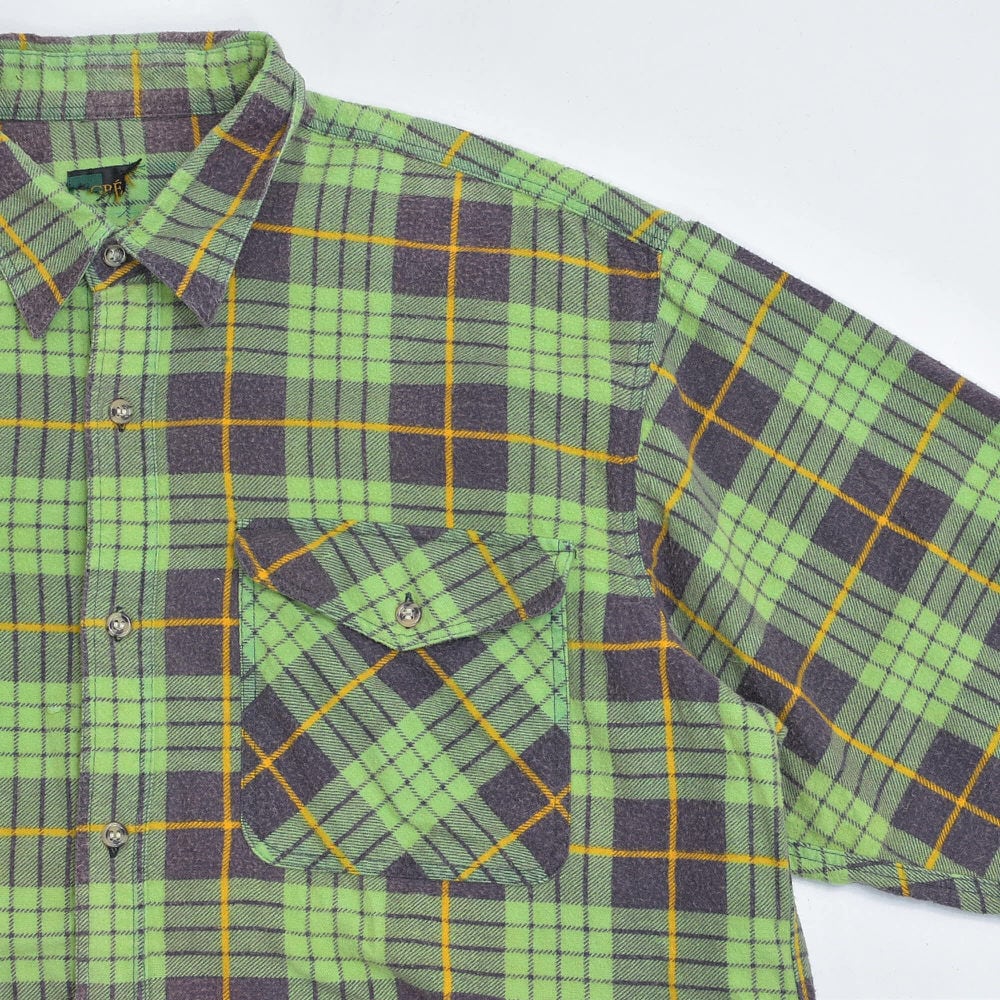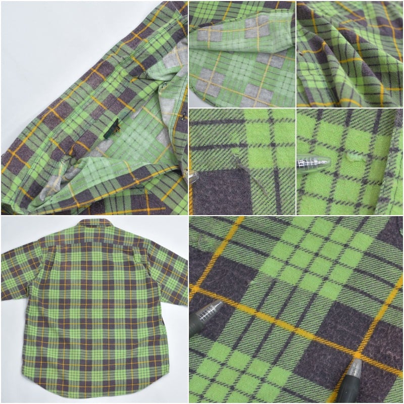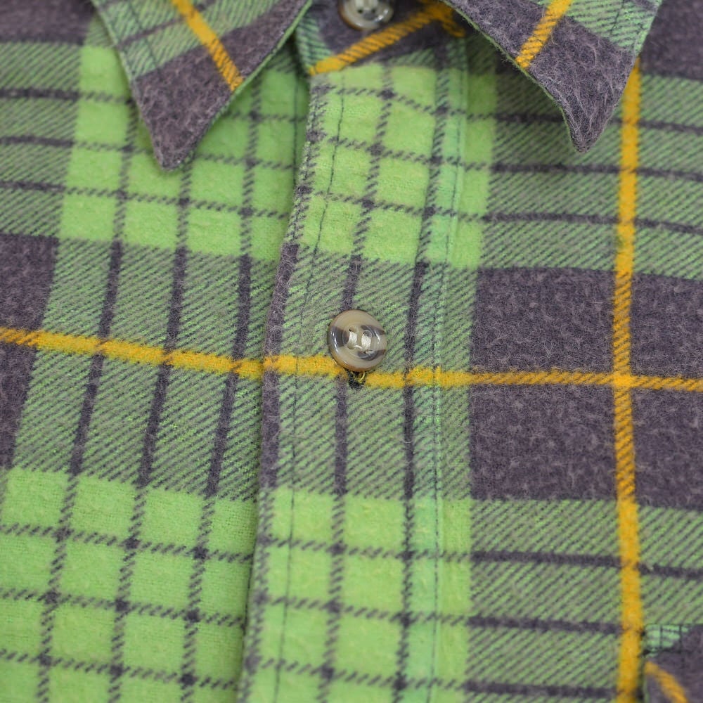 80s Print flannel checkプリントチェック フランネルシャツ 総柄 ワーク 格子柄 長袖シャツ グリーン ヴィンテージ ビンテージ 古着 メンズL〜相当