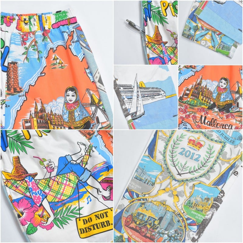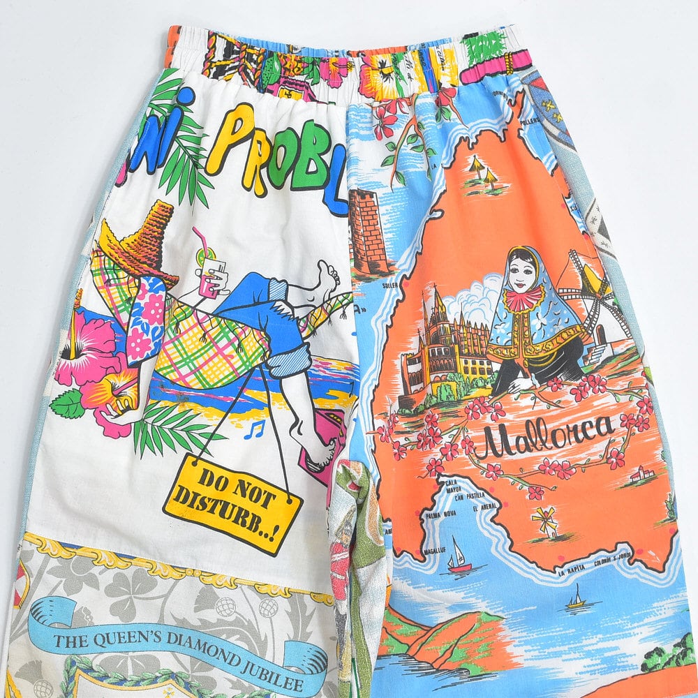 Remakeリメイク ヴィンテージ テキスタイル パッチワーク デザイン 再構築 ルーズシルエット イージーパンツ ツギハギ 古着 裏地付き ユニセックスデザイン W62〜98cm
