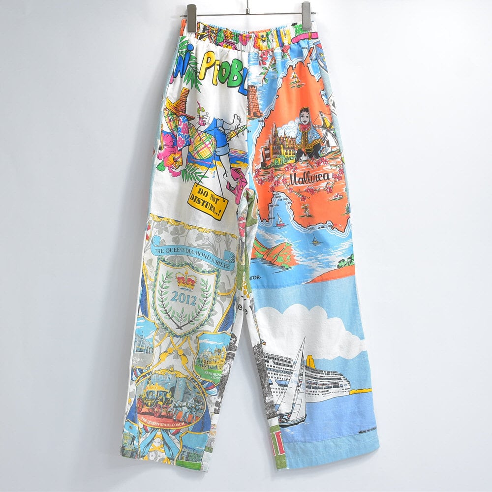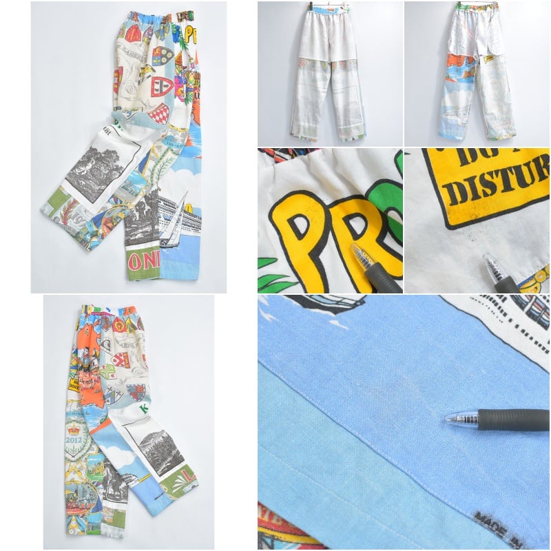 Remakeリメイク ヴィンテージ テキスタイル パッチワーク デザイン 再構築 ルーズシルエット イージーパンツ ツギハギ 古着 裏地付き ユニセックスデザイン W62~98cm