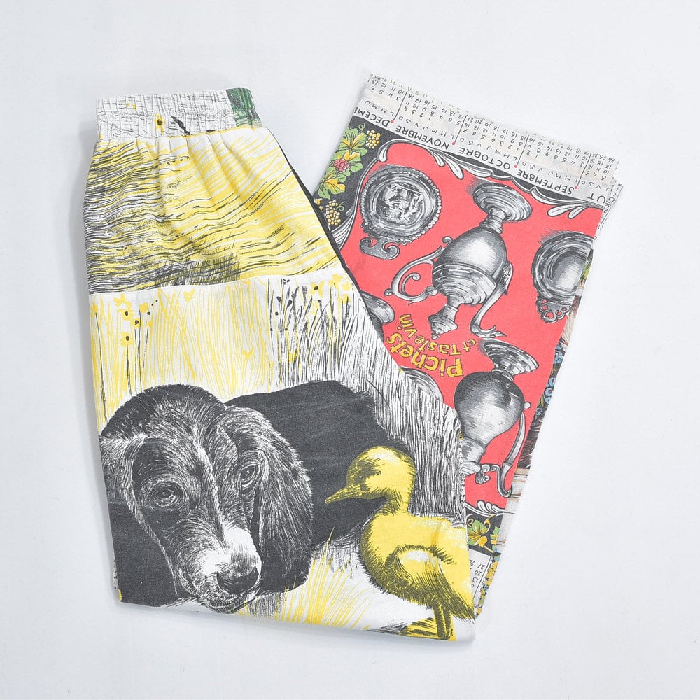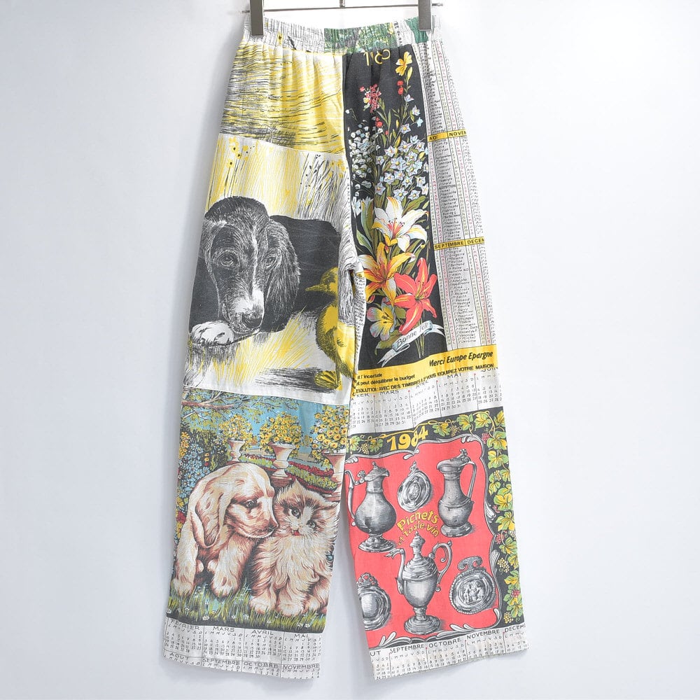 Remakeリメイク ヴィンテージ テキスタイル パッチワーク デザイン 再構築 ルーズシルエット イージーパンツ ツギハギ 古着 裏地付き W61~96cm