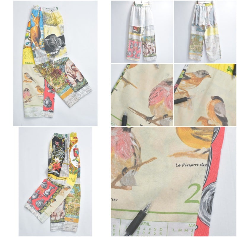 ヴィンテージなどの色んな生地を丁寧に繋ぎ合わせて一本のパンツに仕上げたリメイクパンツ