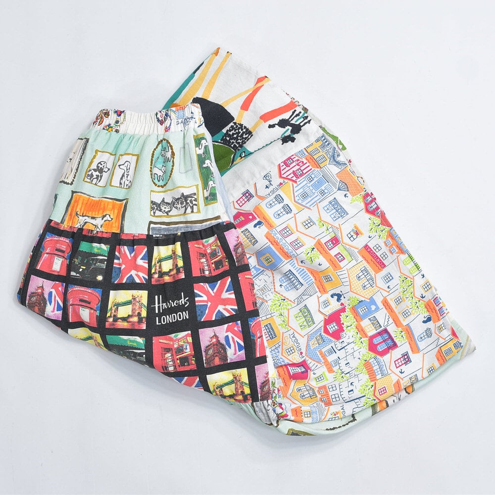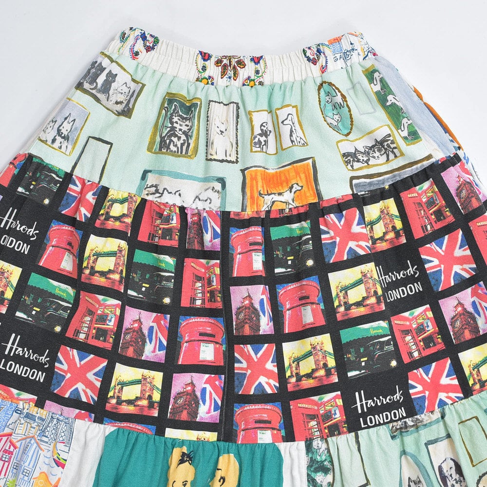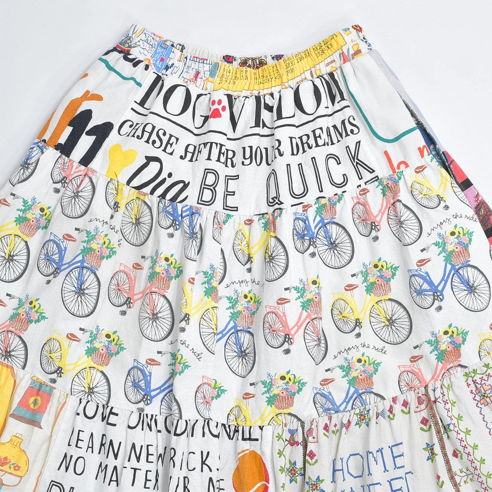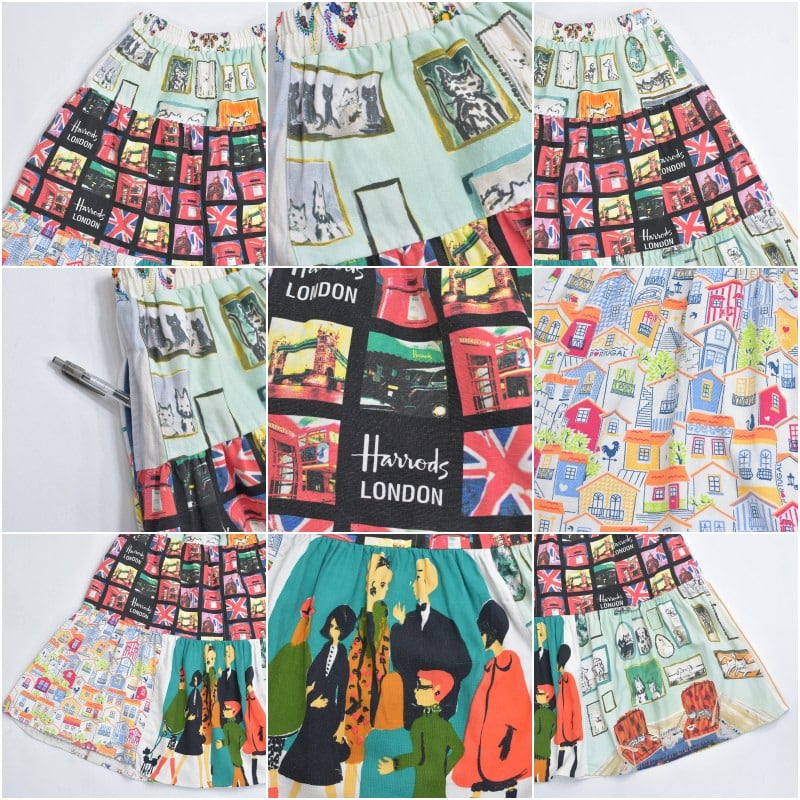 Remake リメイク ヴィンテージ テキスタイル パッチワーク デザイン ティアードスカート 裏地付き パッチワーク 再構築 ツギハギ レディースW64〜100cm
