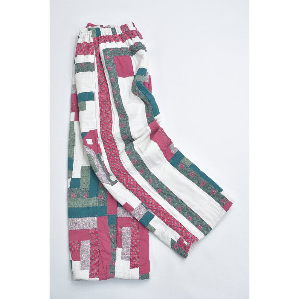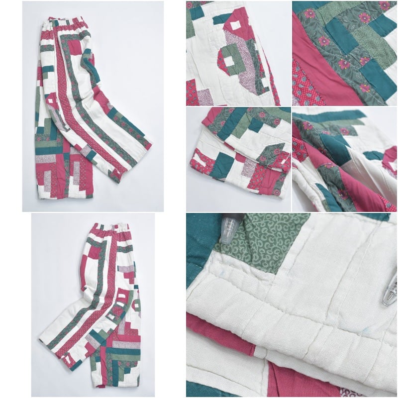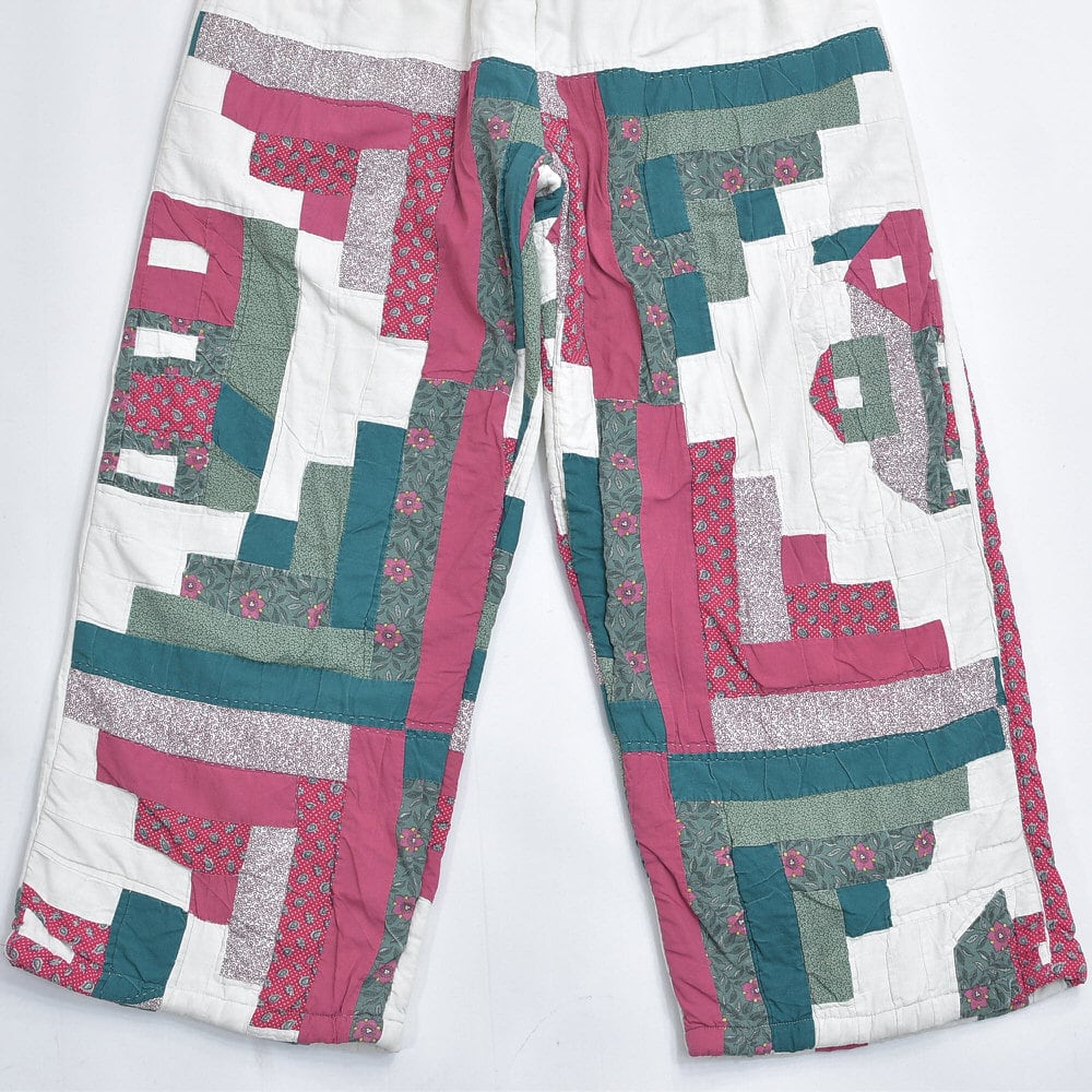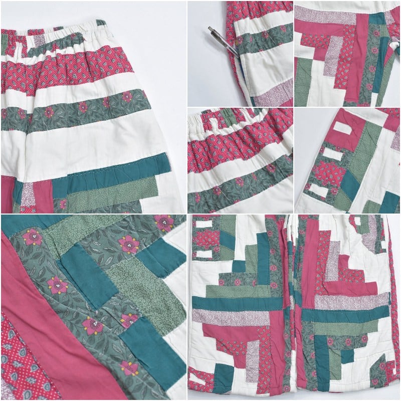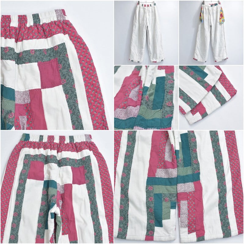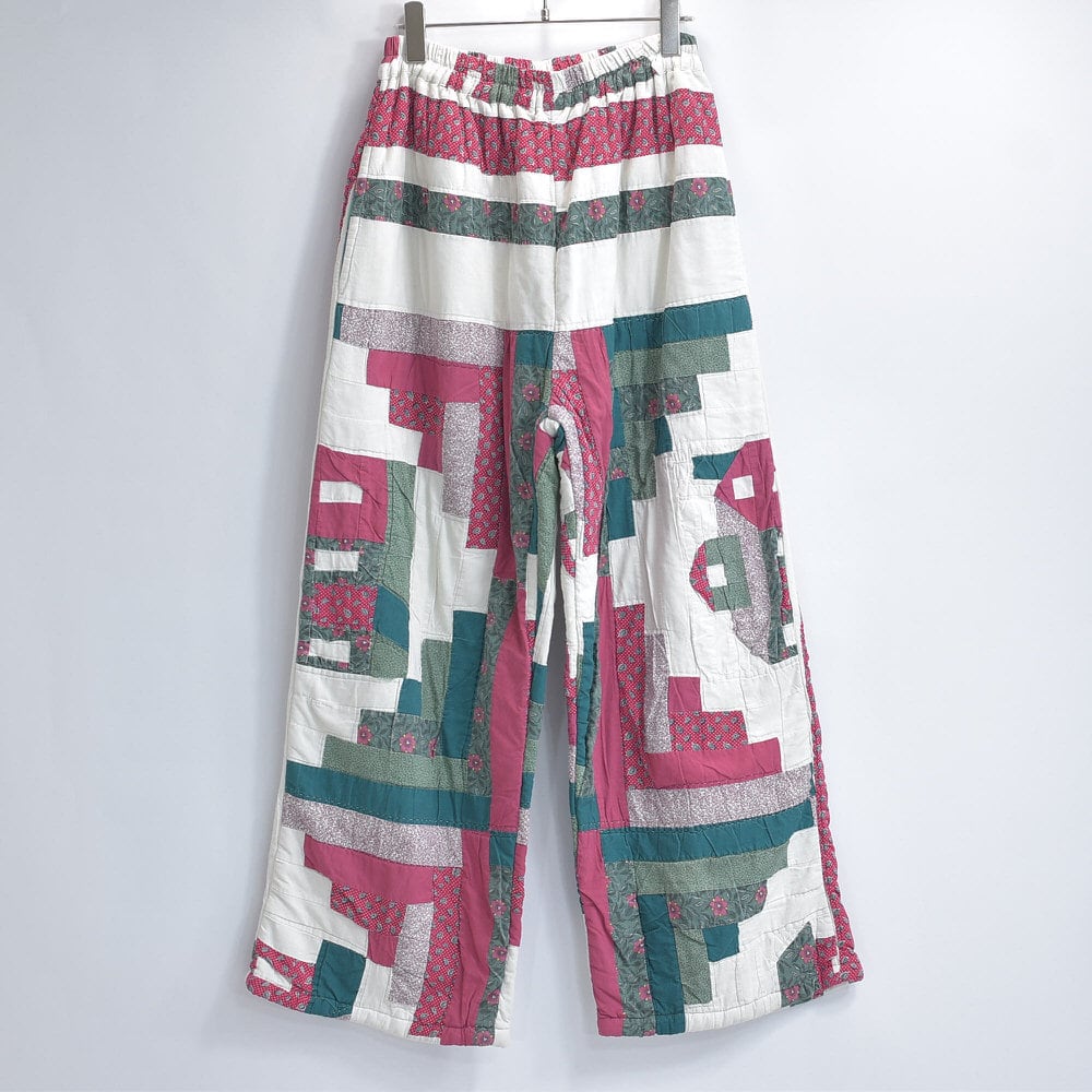 Remake リメイク ハンドメイド デザイン パッチワーク キルト ルーズシルエット イージーパンツ 再構築 ツギハギ ペイズリー 小花 ユニセックスデザイン W67~102cm