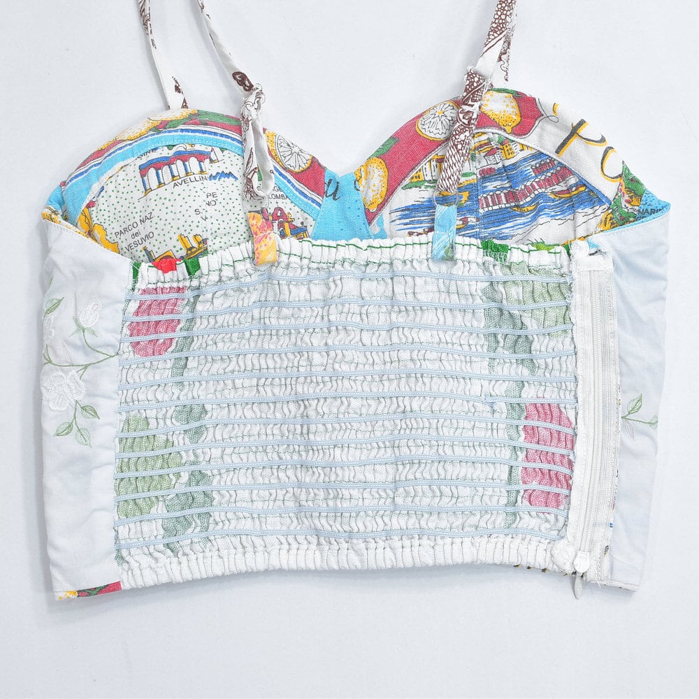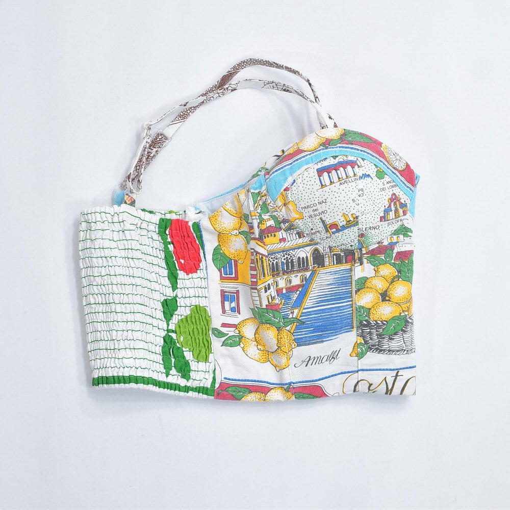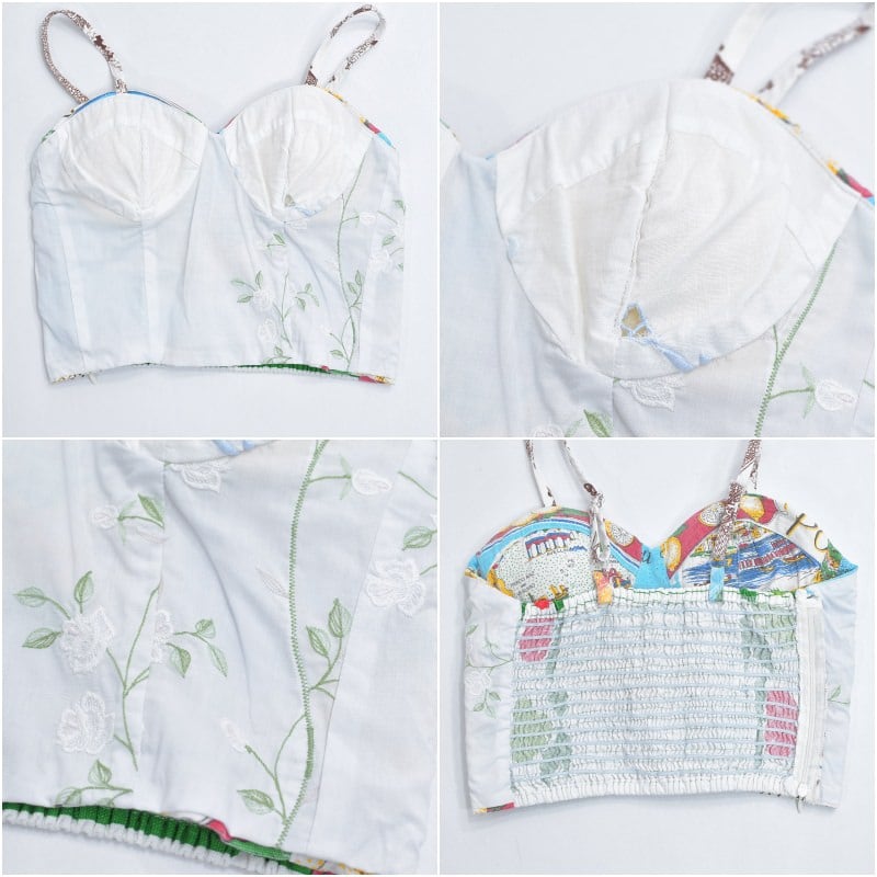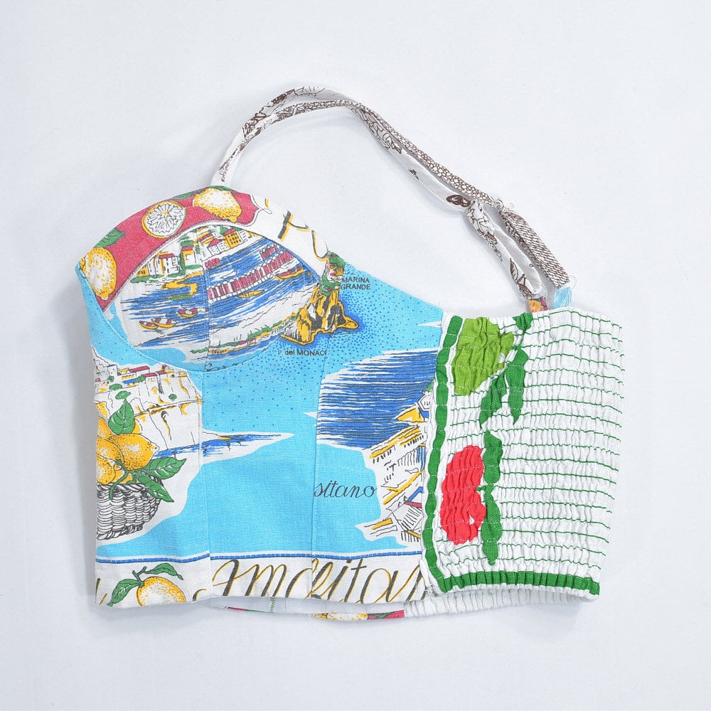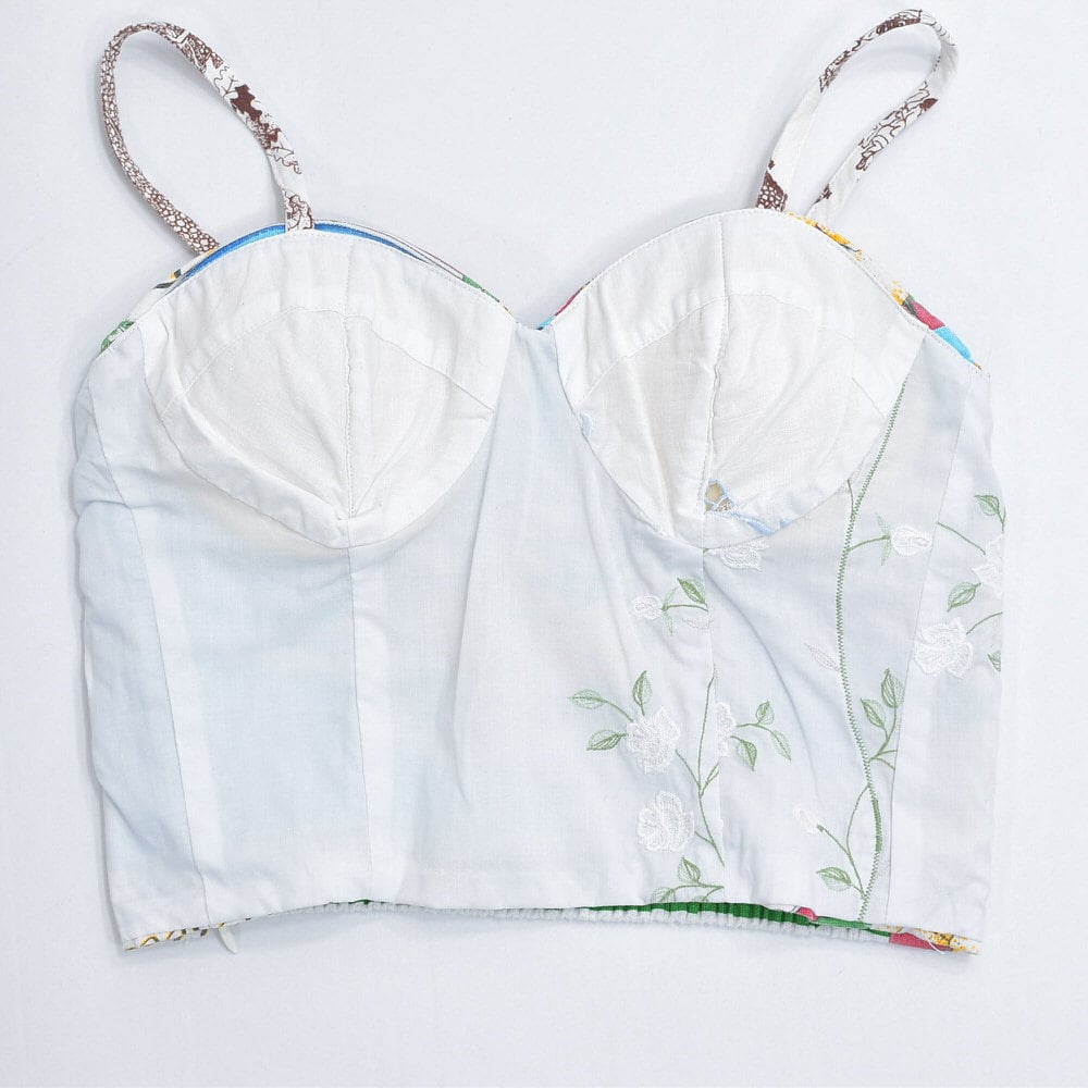 そんな色々な柄の生地をパターンを引き、裁断、縫製し再構築したリメイクのビスチェ