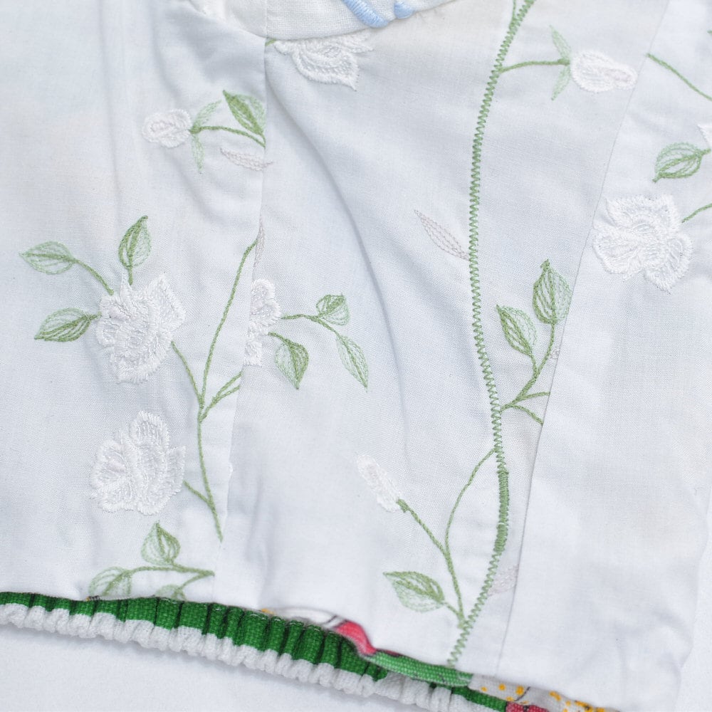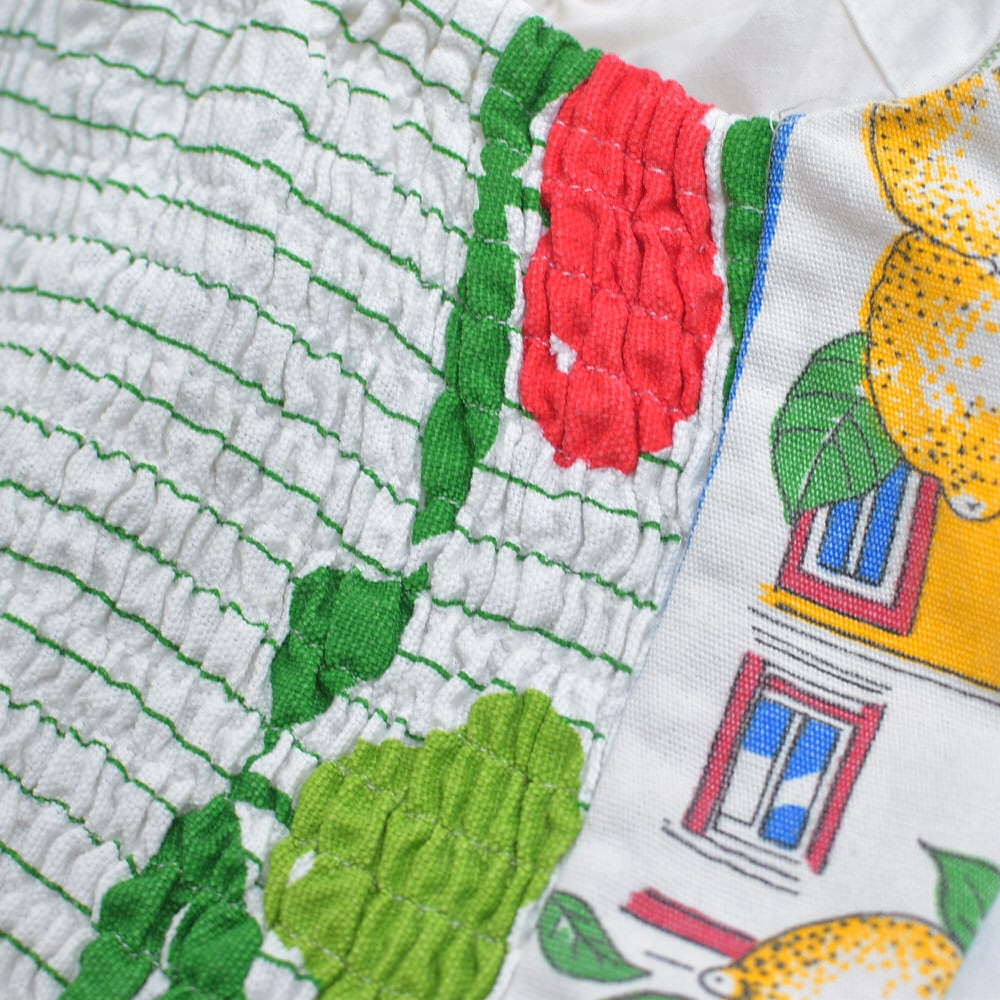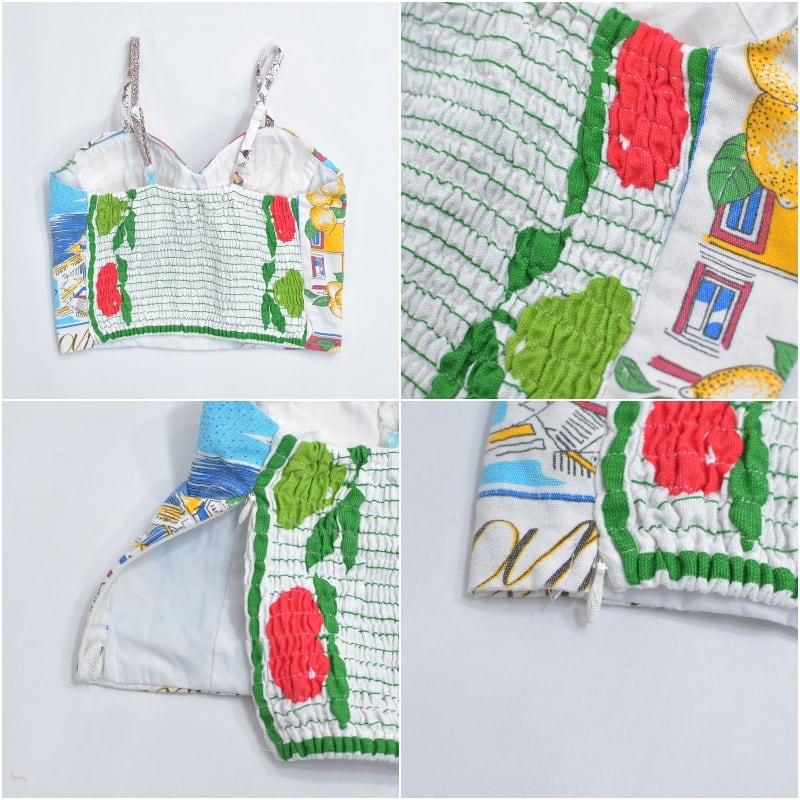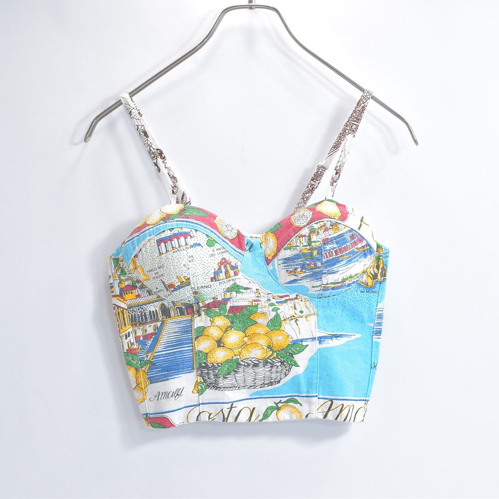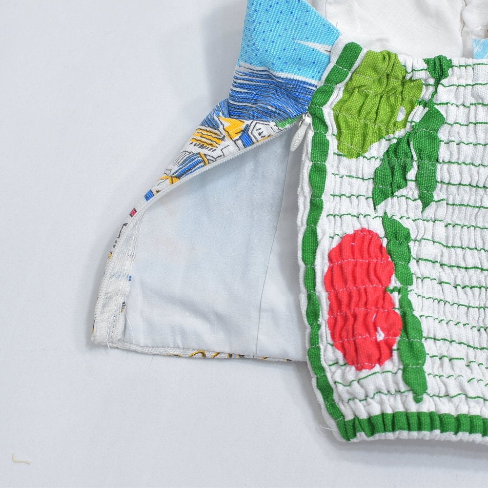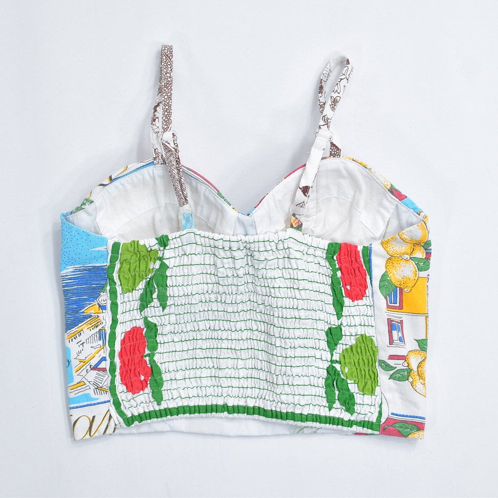 そんな色々な柄の生地をパターンを引き、裁断、縫製し再構築したリメイクのビスチェ