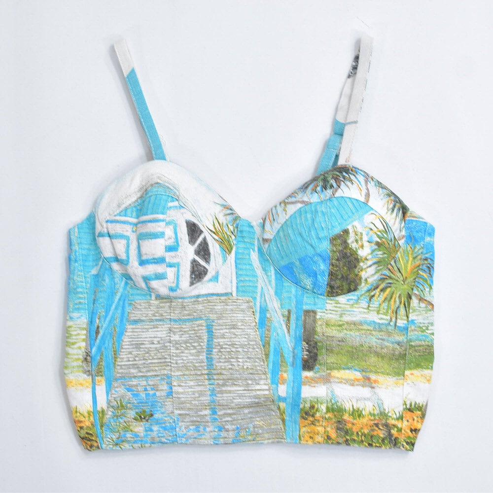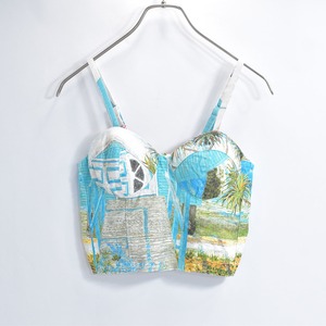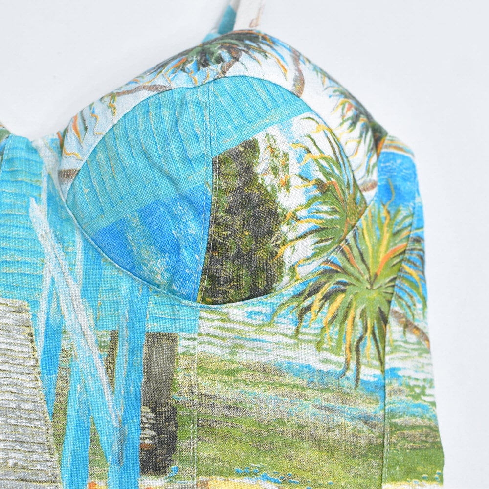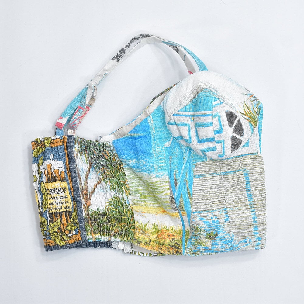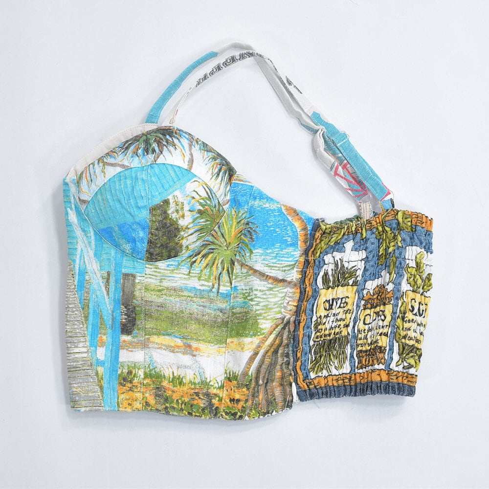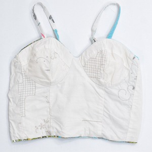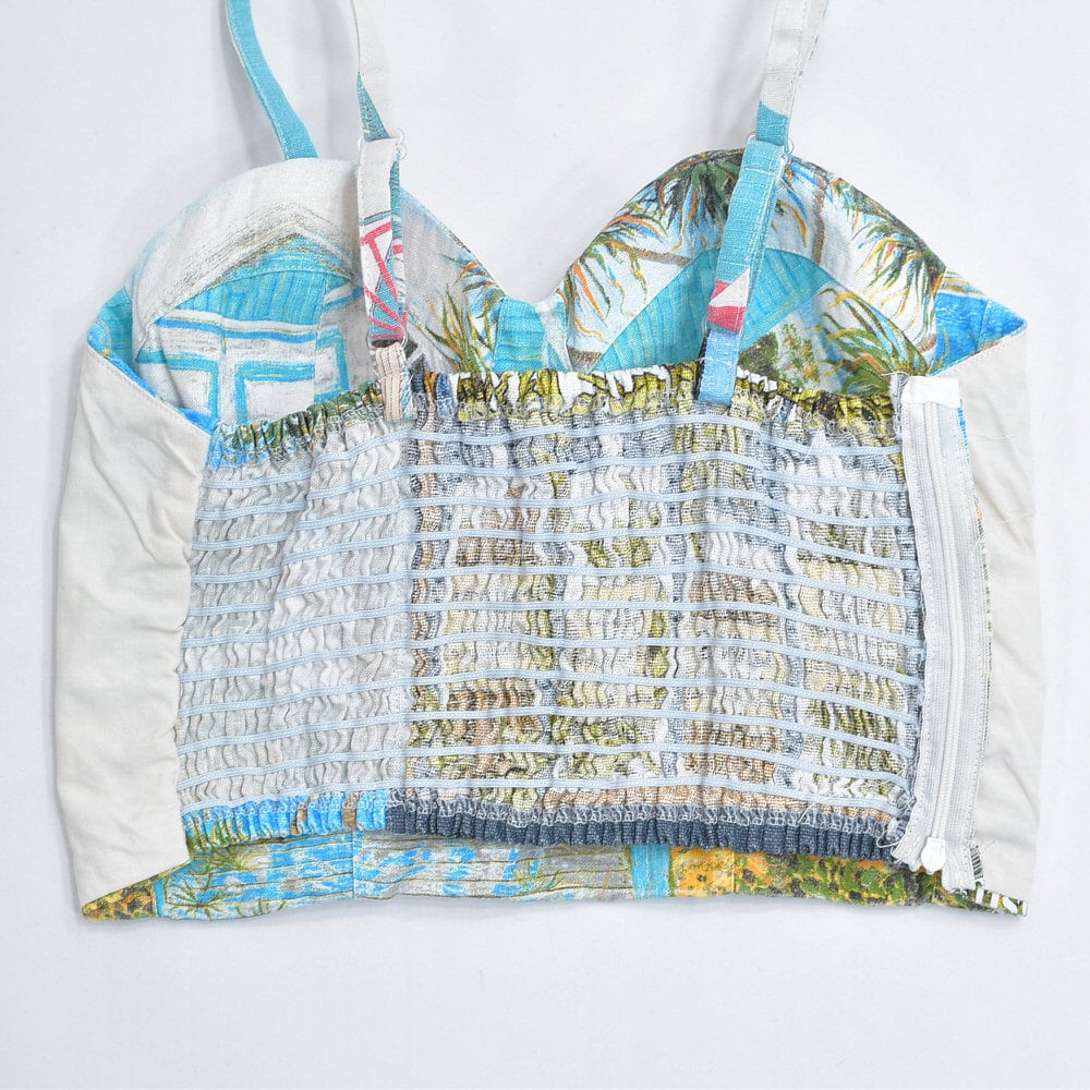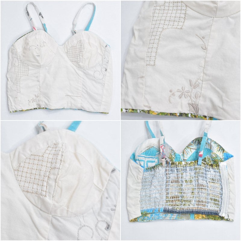 そんな色々な柄の生地をパターンを引き、裁断、縫製し再構築したリメイクのビスチェ