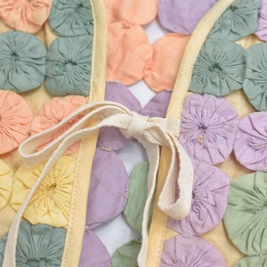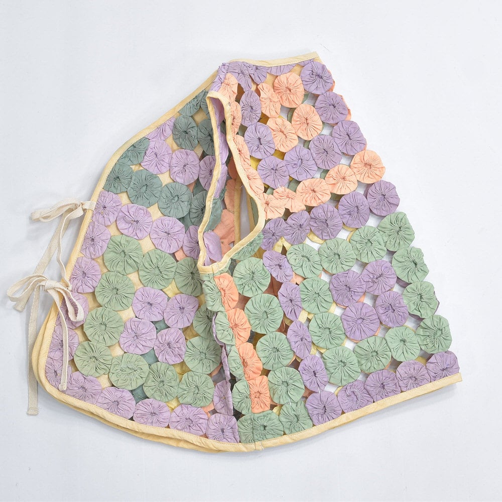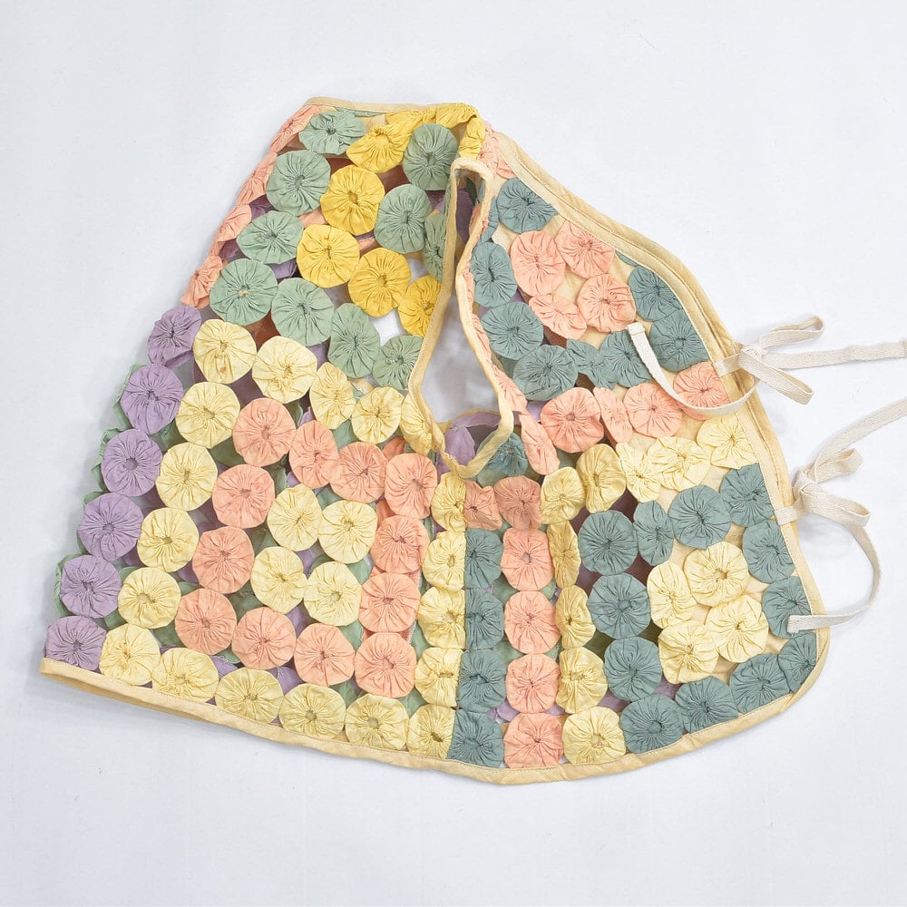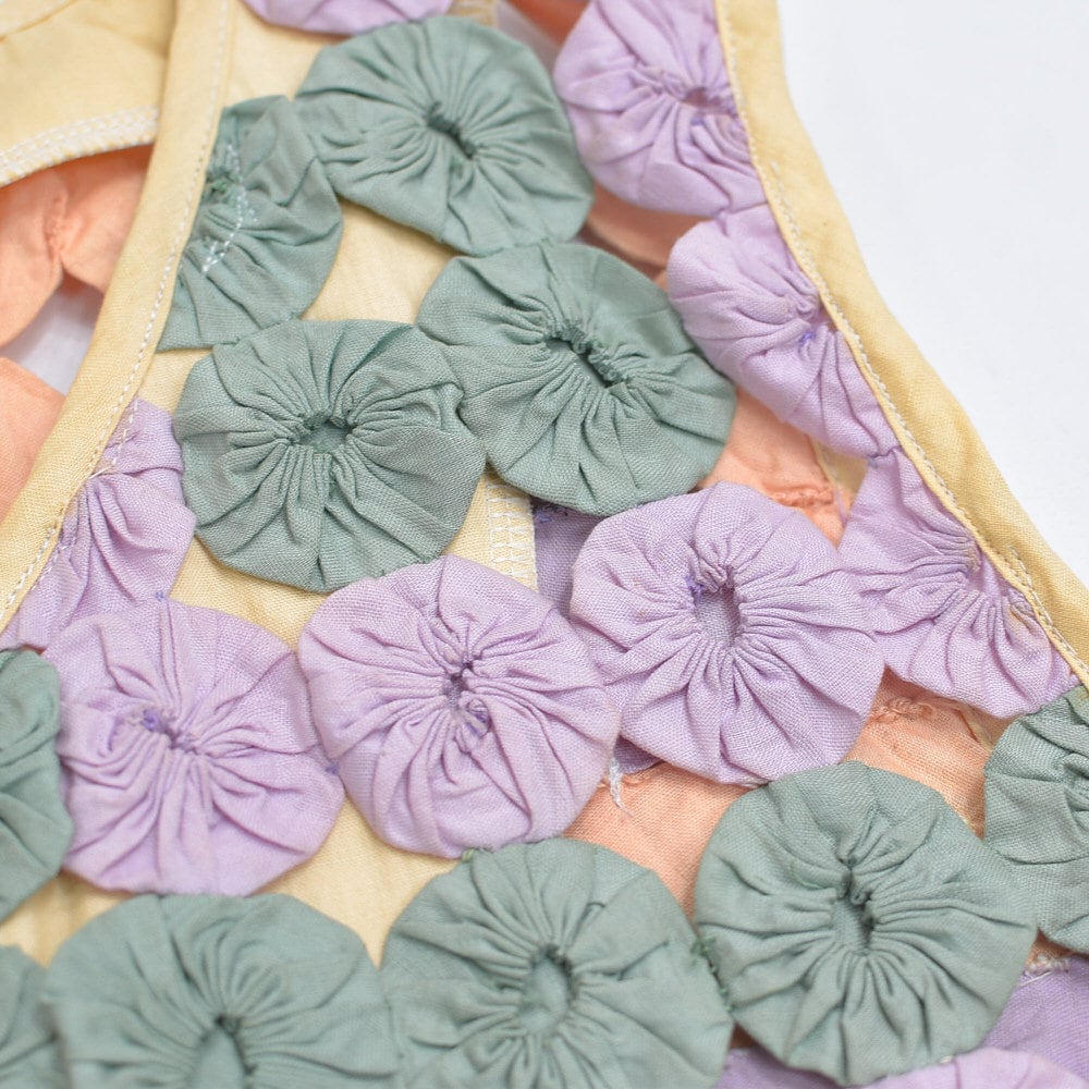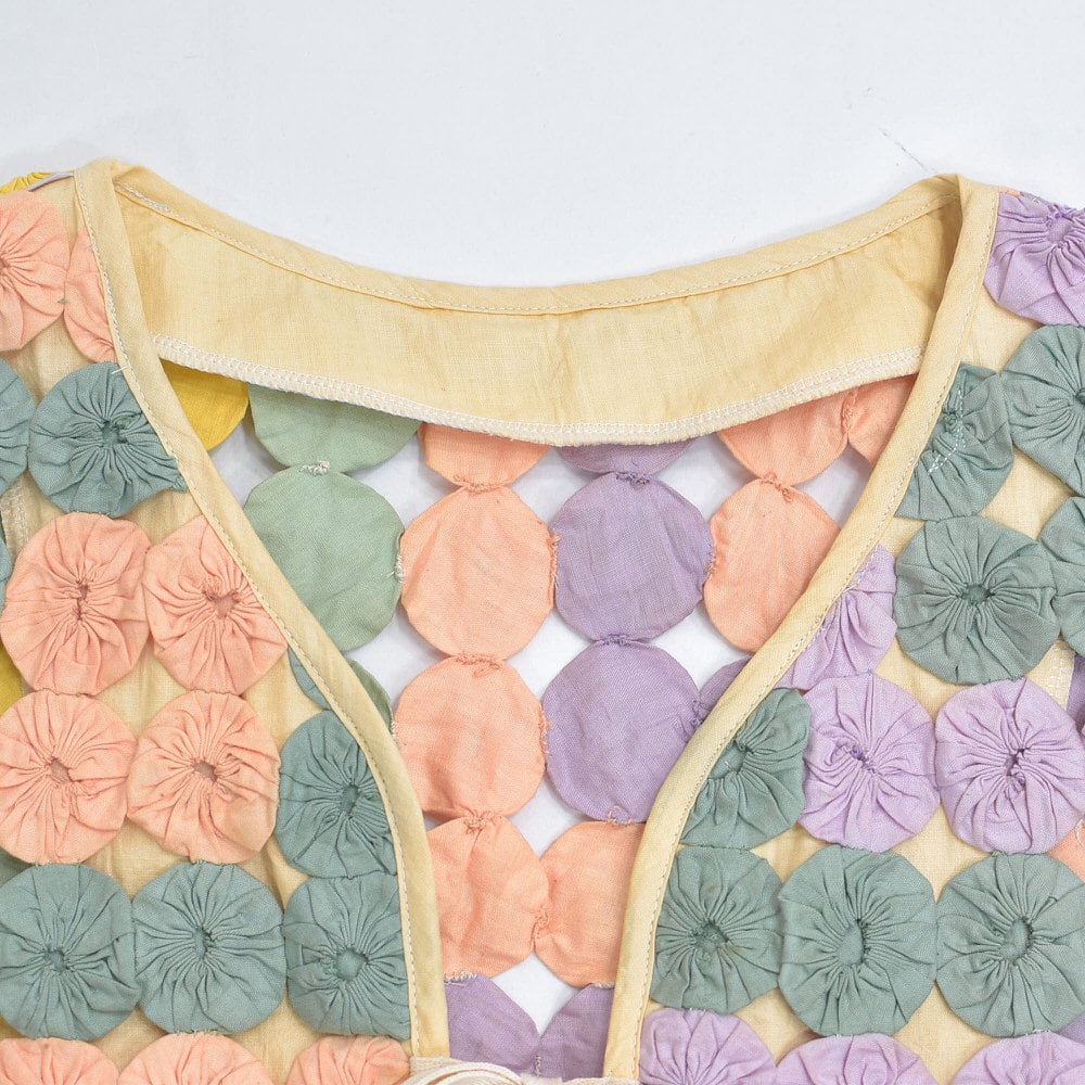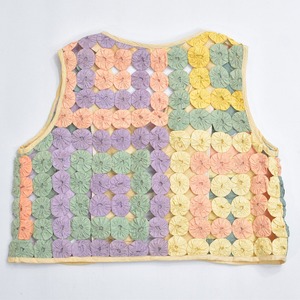 Remake ハンドメイド デザイン リメイク ヨーヨーキルト ベスト パッチワーク レース メッシュ 再構築 ツギハギ 幾何学模様 レトロ レディースL相当