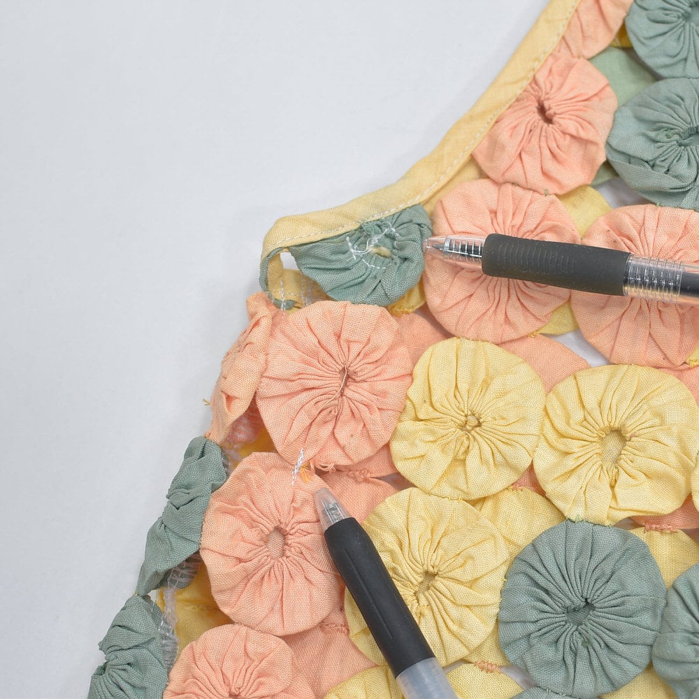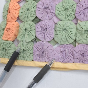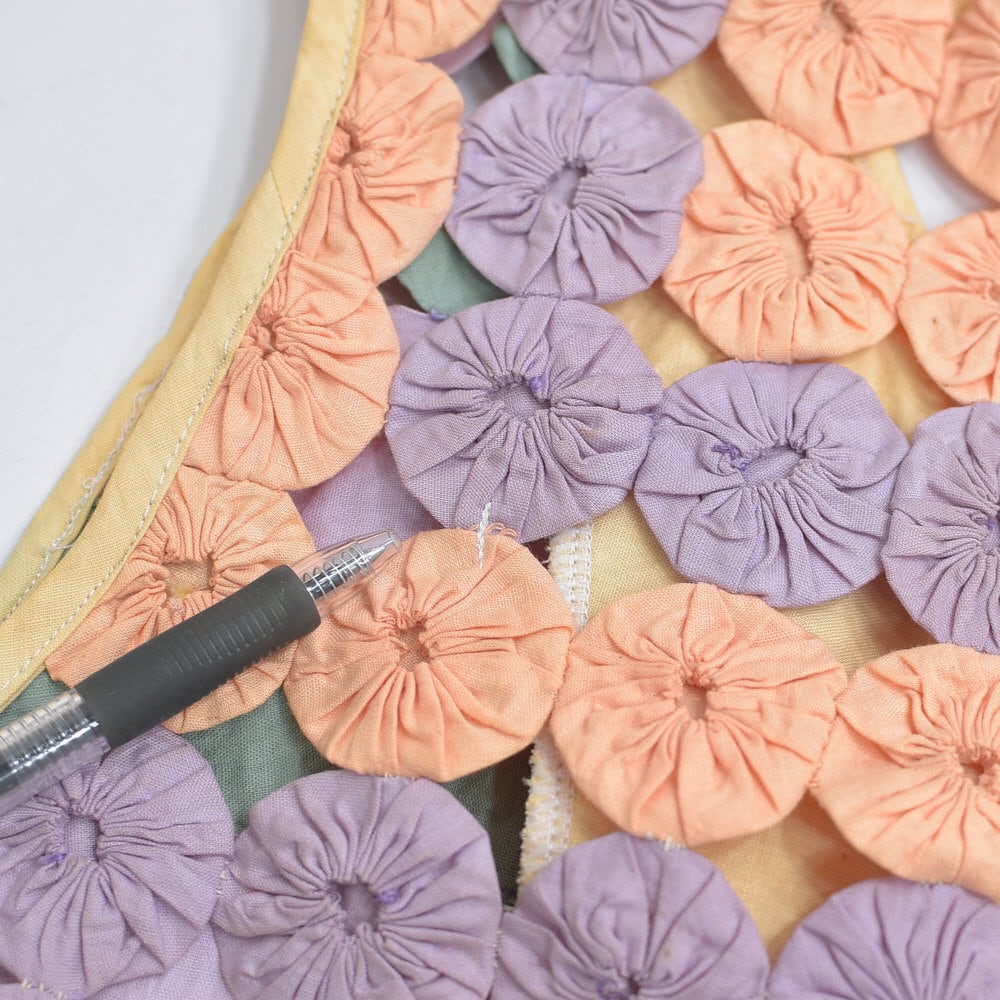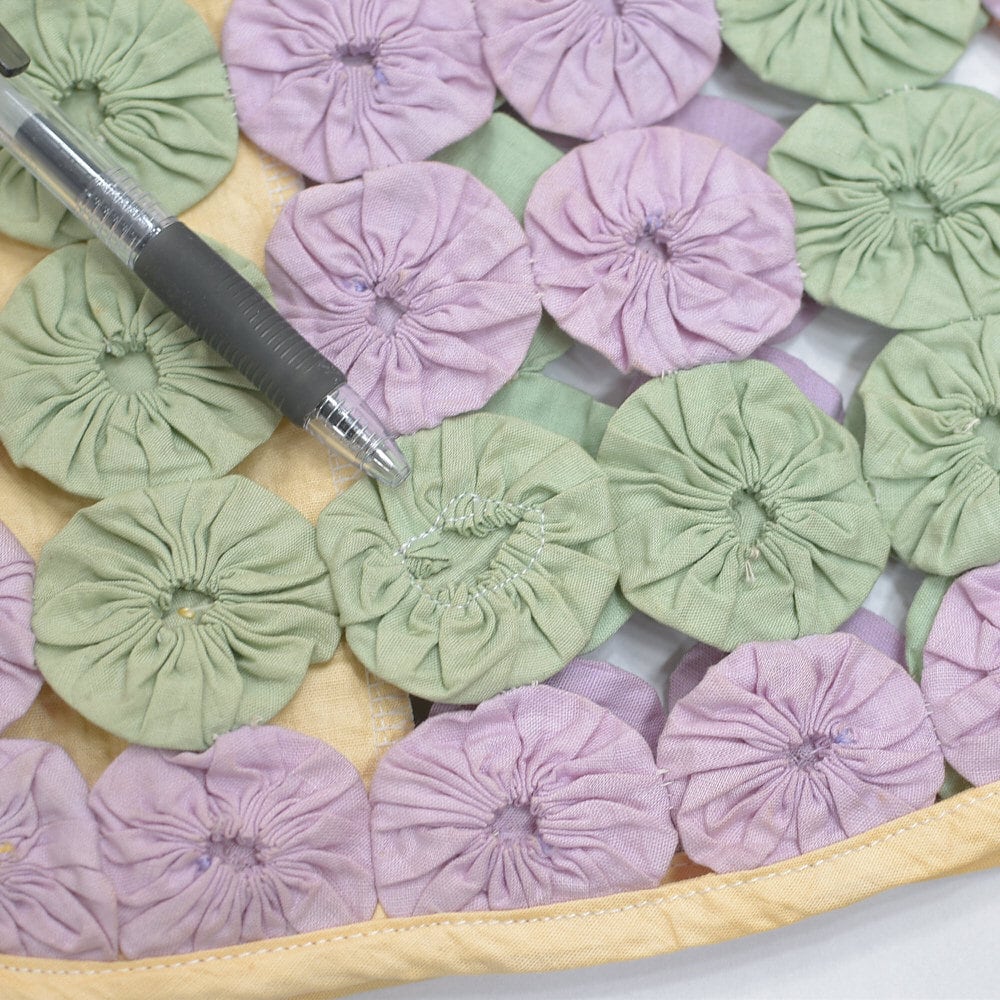 パッチワークキルトがお好きな方からはヨーヨーキルトの愛称で親しまれているファブリックですね