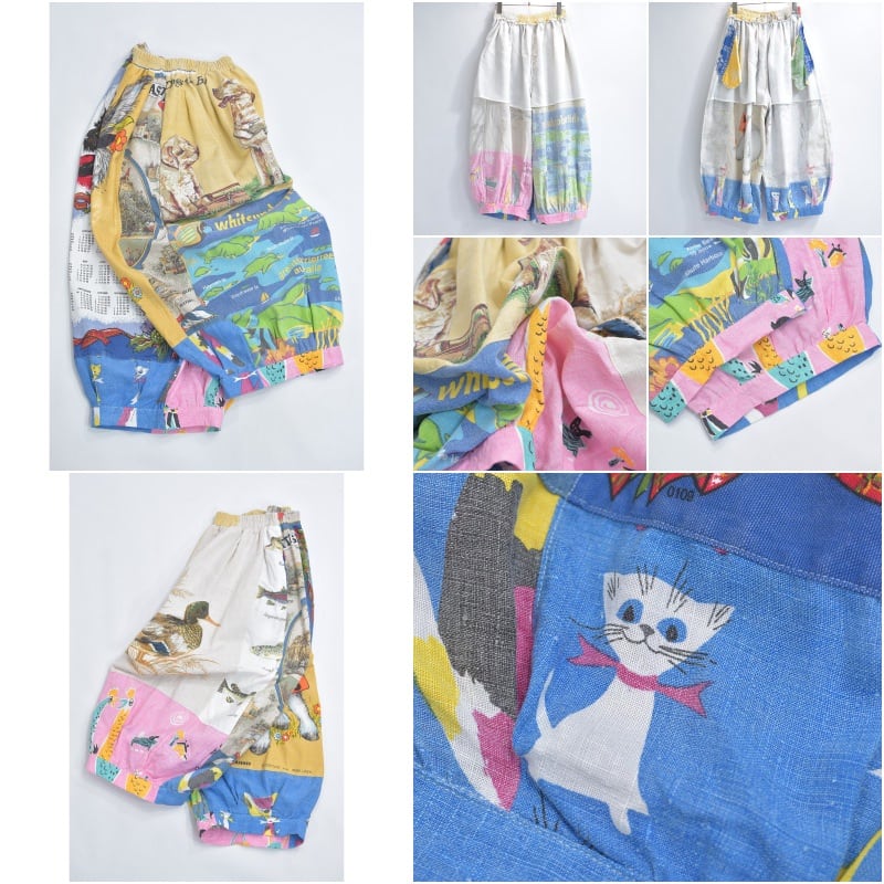 Remake リメイク ヴィンテージ テキスタイル パッチワーク デザイン バルーンシルエット イージーパンツ 再構築 ツギハギ コットン W63~104cm
