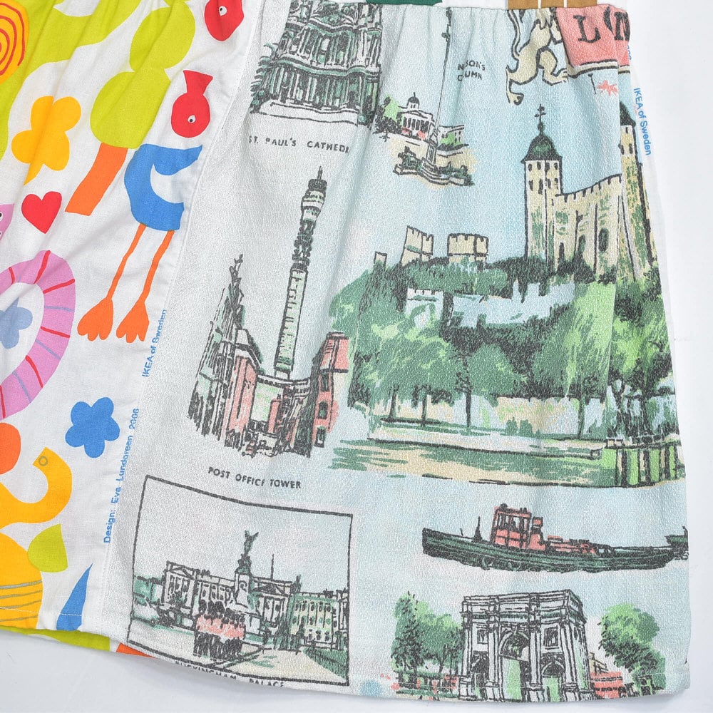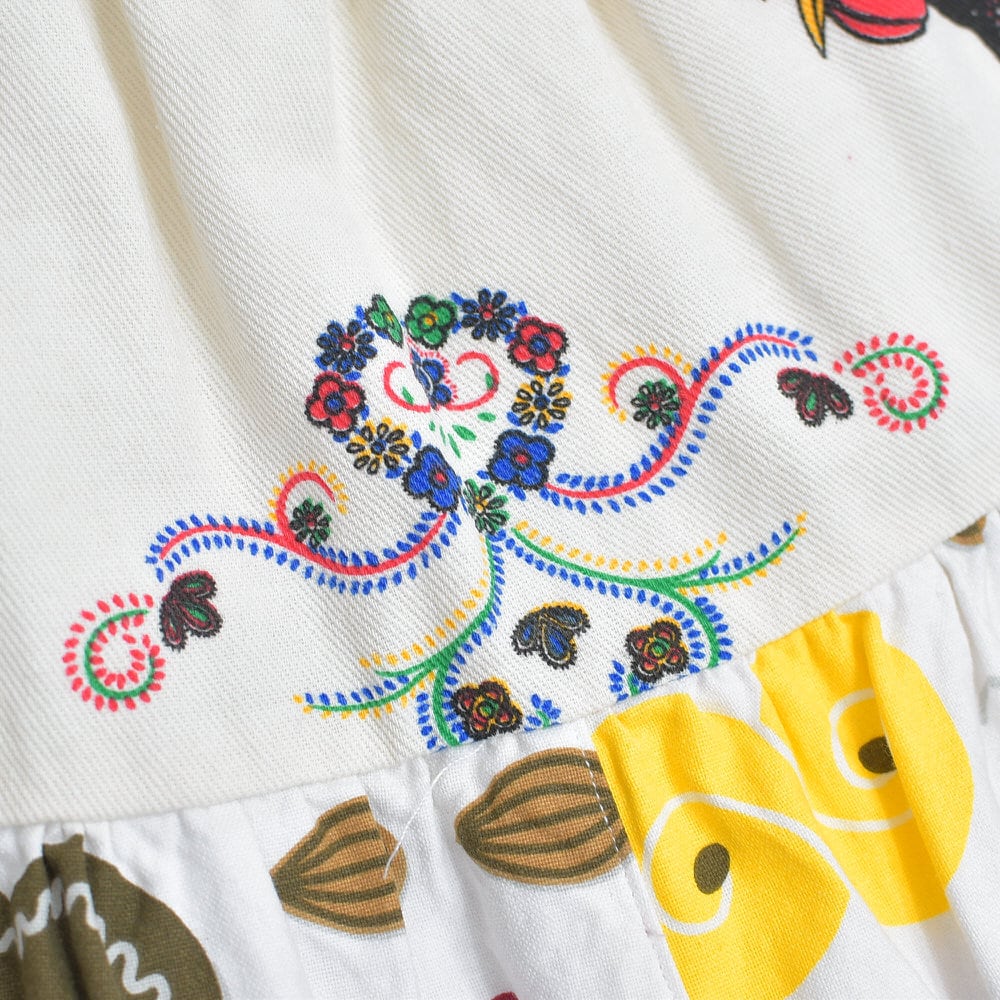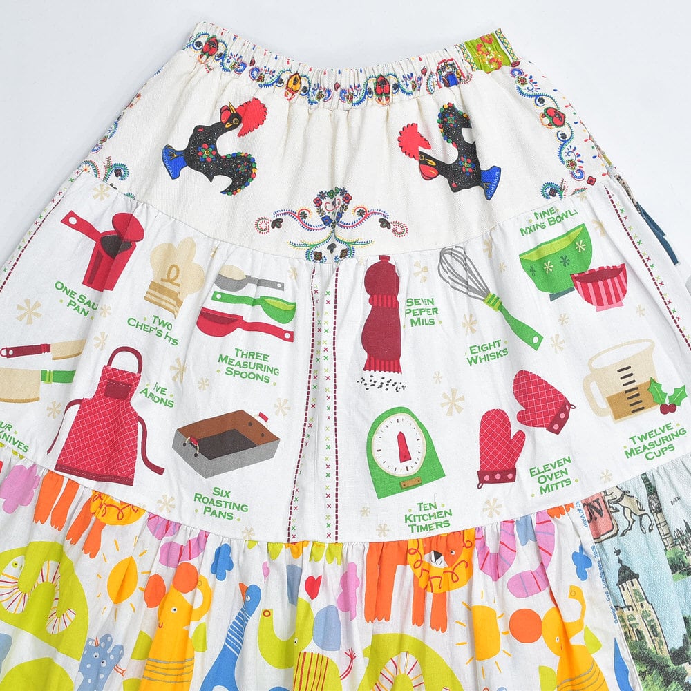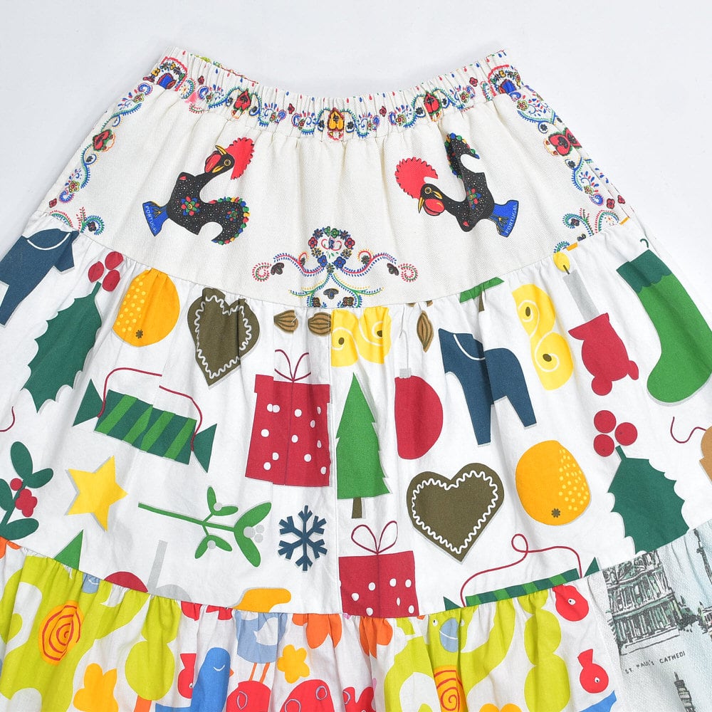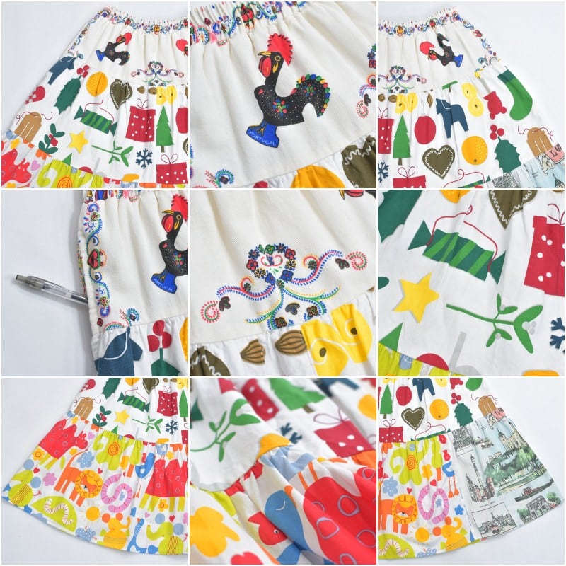 Remake リメイク ヴィンテージ テキスタイル パッチワーク デザイン ティアードスカート 裏地付き フレア 総柄 再構築 ツギハギ レディースW64〜96cm