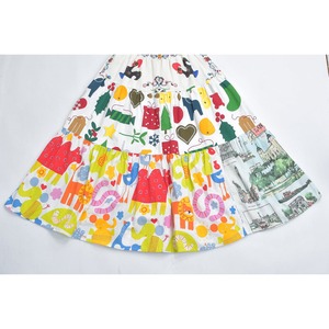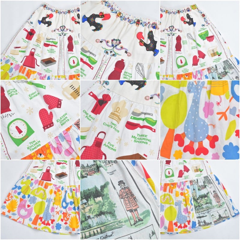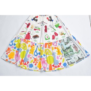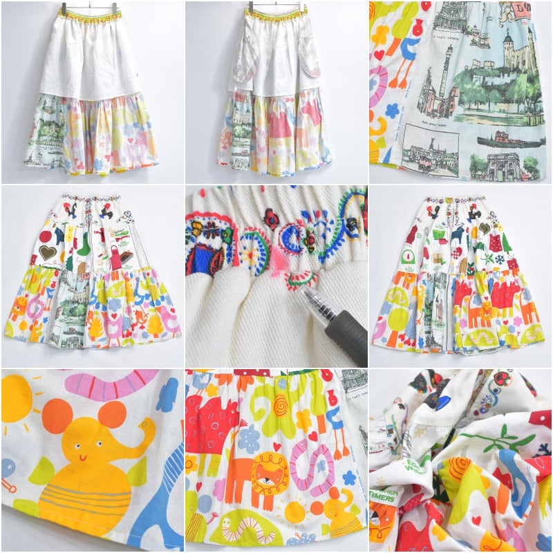Remake リメイク ヴィンテージ テキスタイル パッチワーク デザイン ティアードスカート 裏地付き フレア 総柄 再構築 ツギハギ レディースW64~96cm