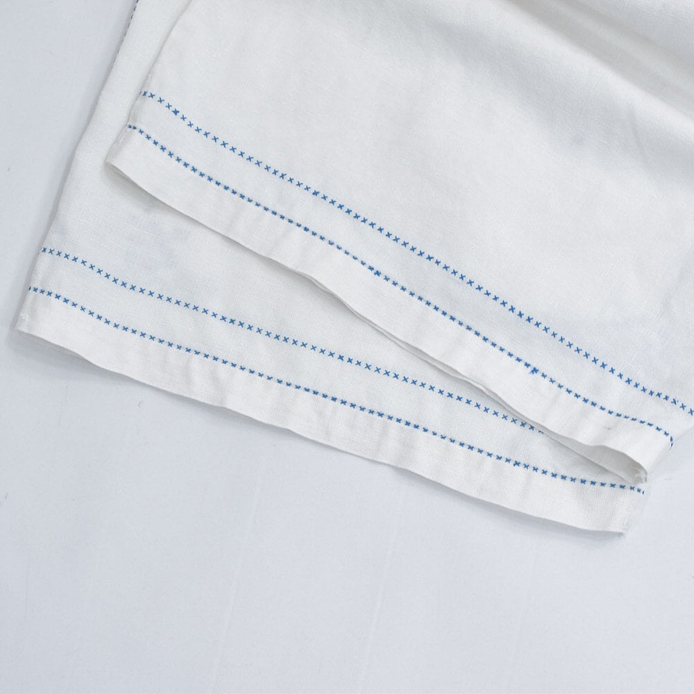 柔らかな風合いを感じるのリネン生地に、何処か懐かしく、ほっと心が落ち着くクロスステッチ刺繍の素敵な佇まい
