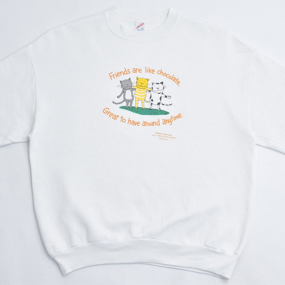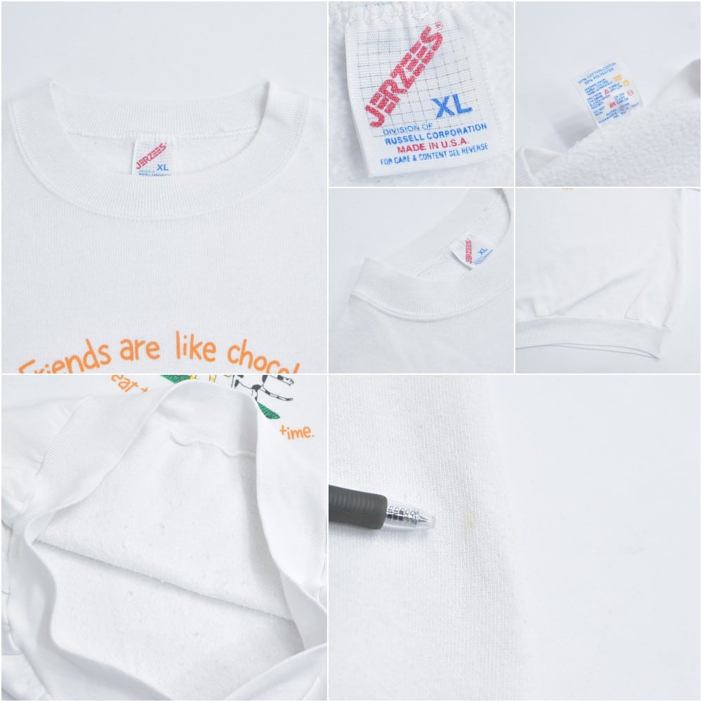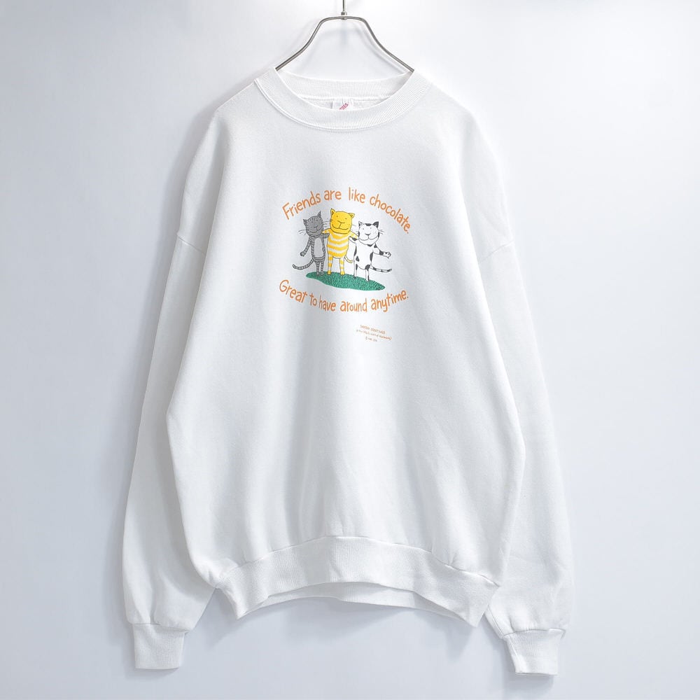 90s USA製 JERZEES ジャージーズ ネコさん プリントデザイン メッセージ プリント スウェット トレーナー ホワイト ヴィンテージ ビンテージ USA アメリカ古着 メンズXLサイズ