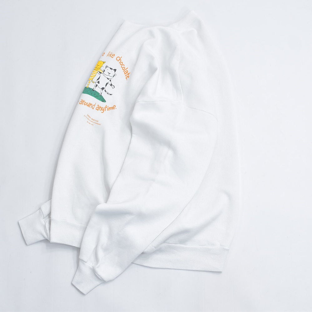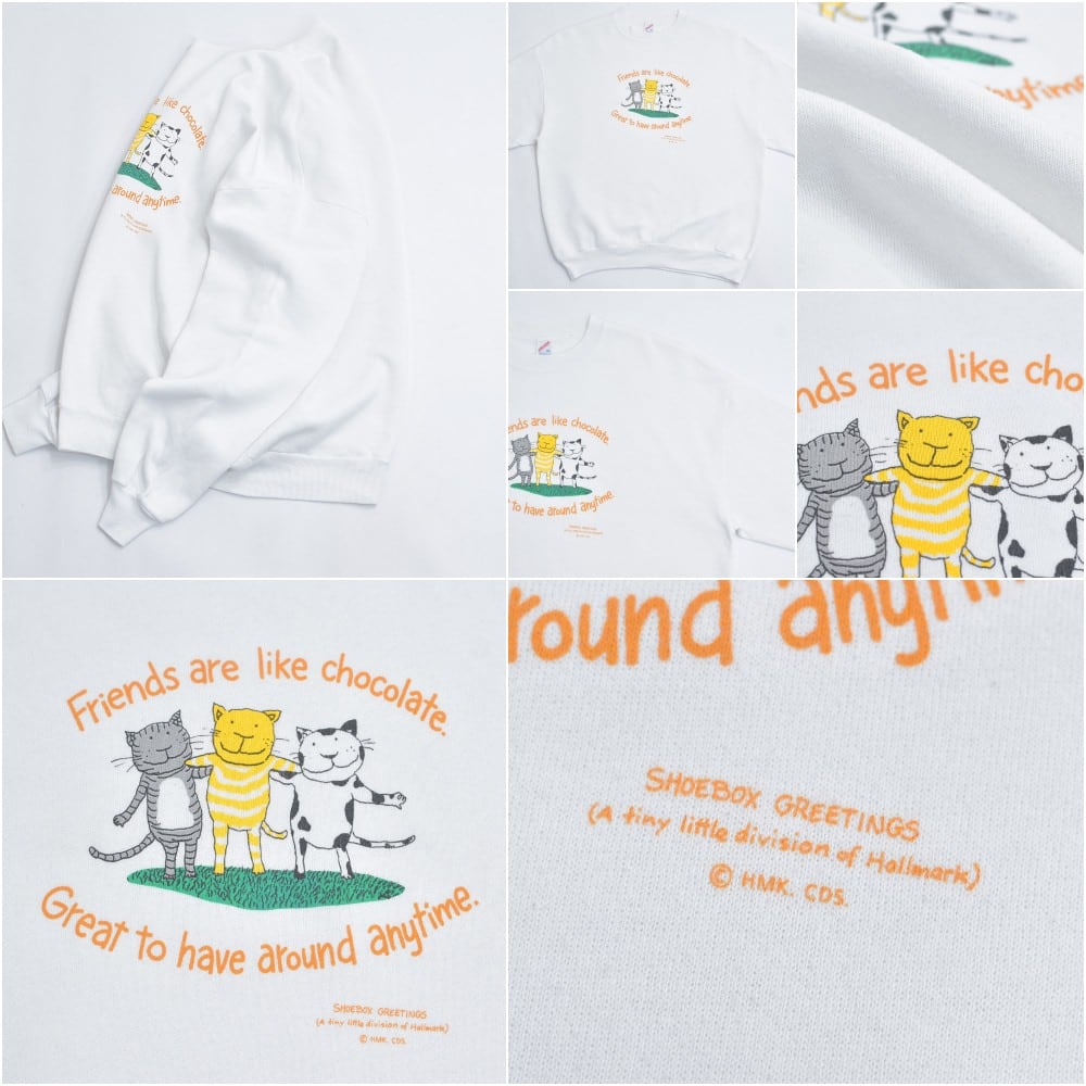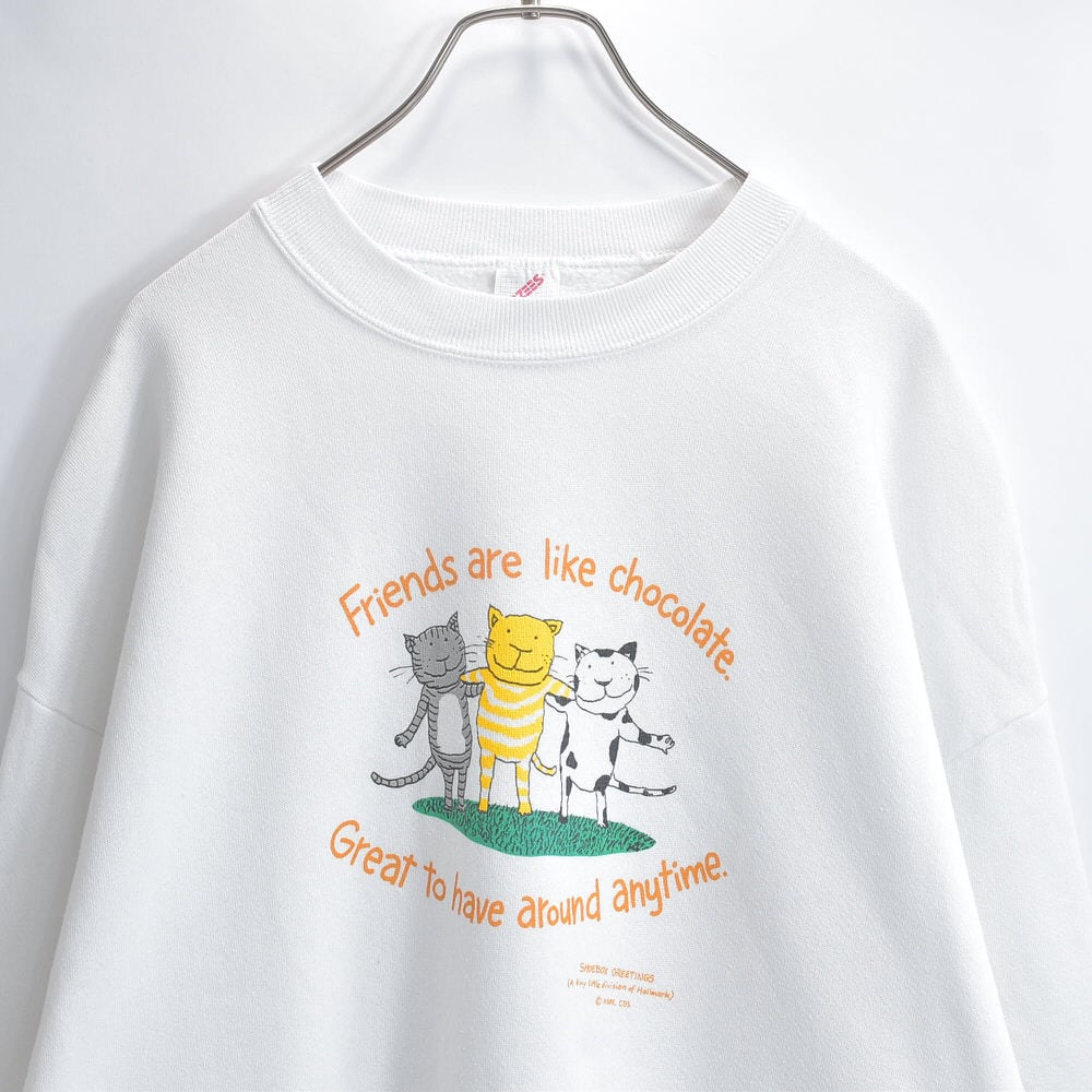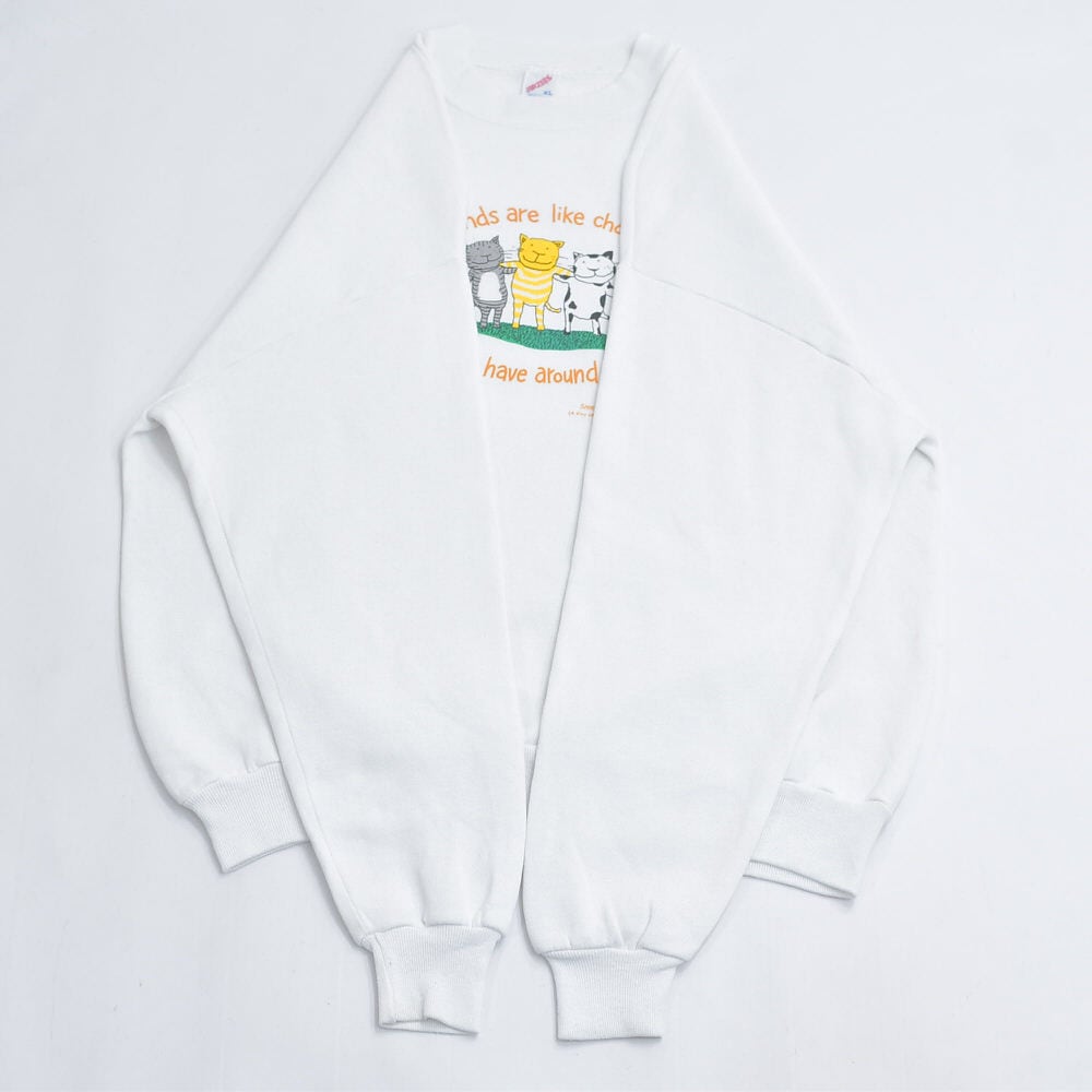 90s USA製 JERZEES ジャージーズ ネコさん プリントデザイン メッセージ プリント スウェット トレーナー ホワイト ヴィンテージ ビンテージ USA アメリカ古着 メンズXLサイズ