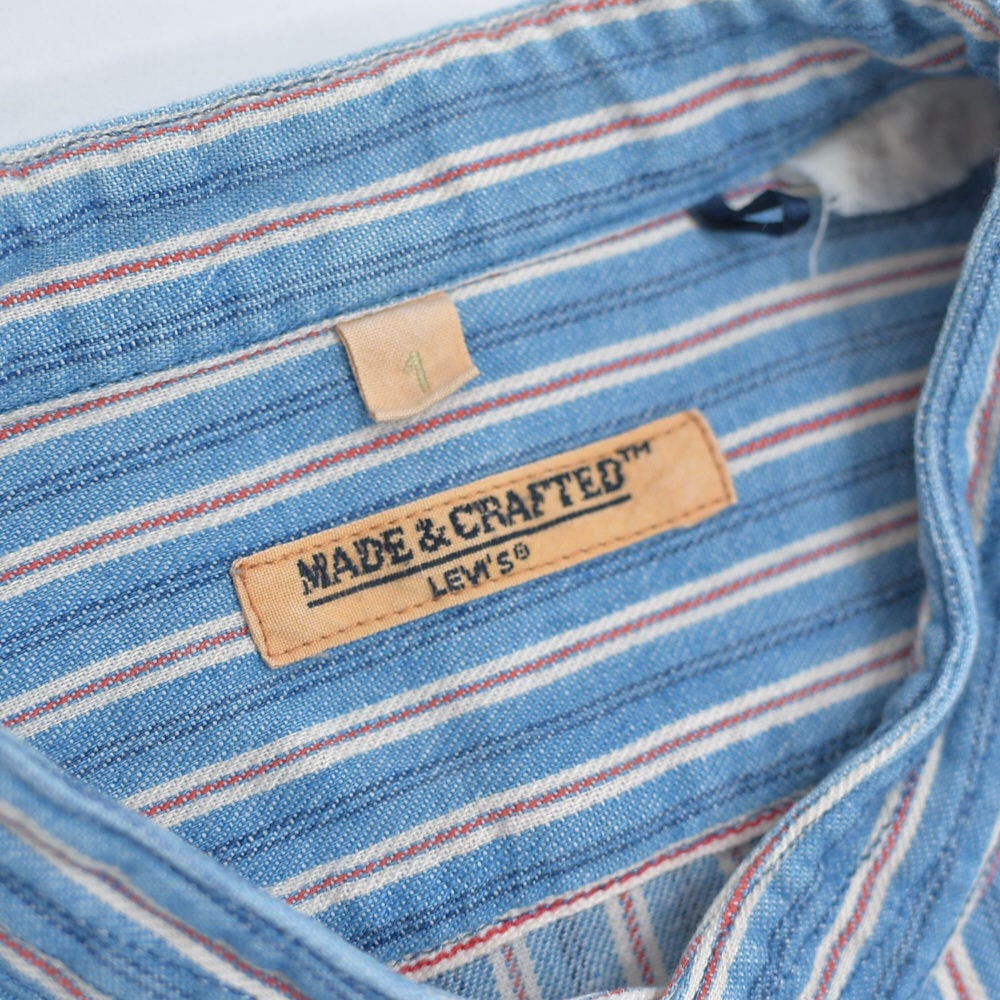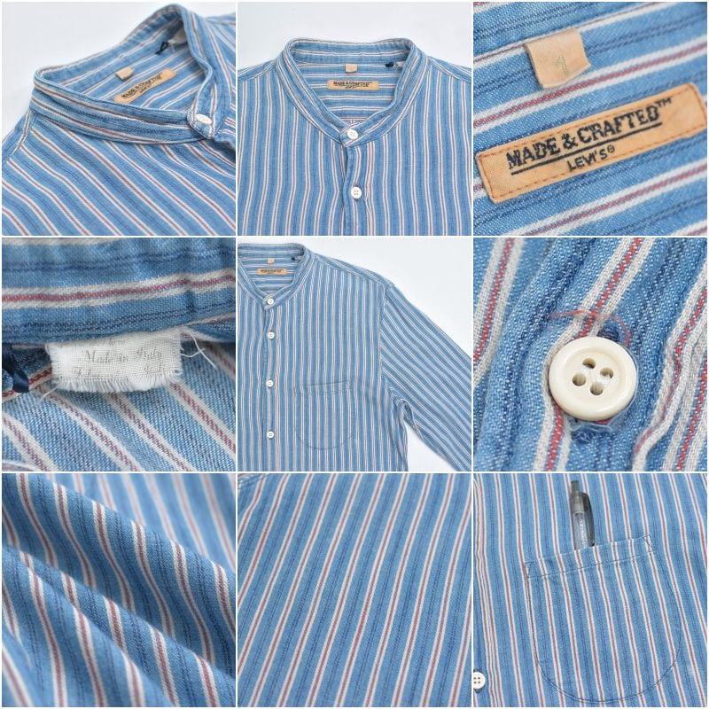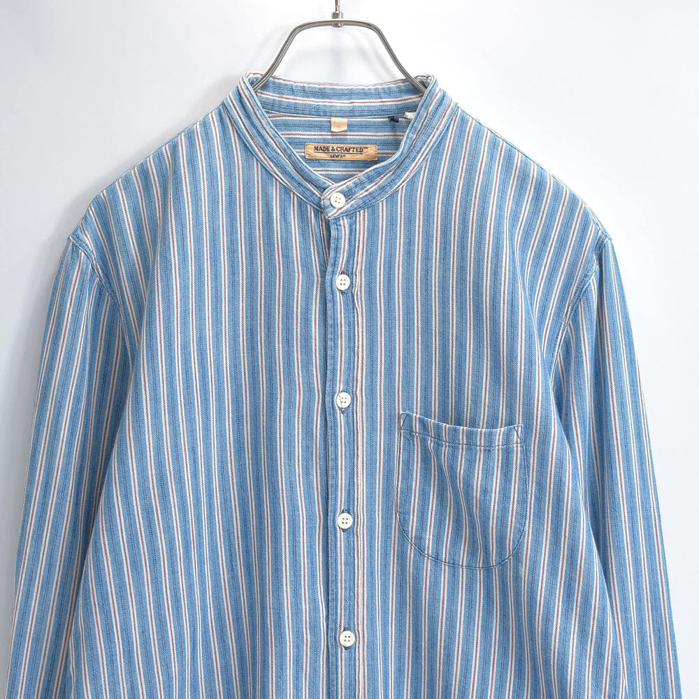 10s Levi's Made & Crafted リーバイス スタンドカラー マルチストライプ デザイン コットン シャツ ヴィンテージ ビンテージ USA アメリカ古着 メンズM相当