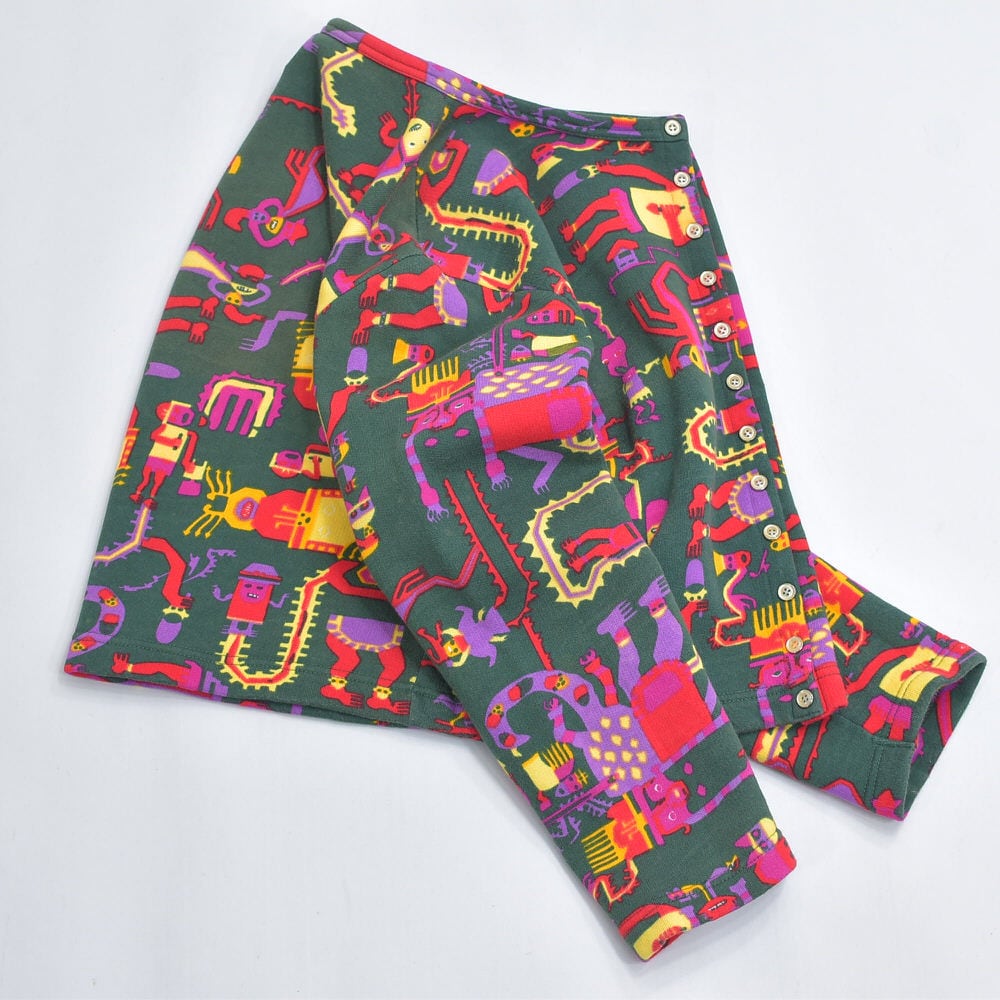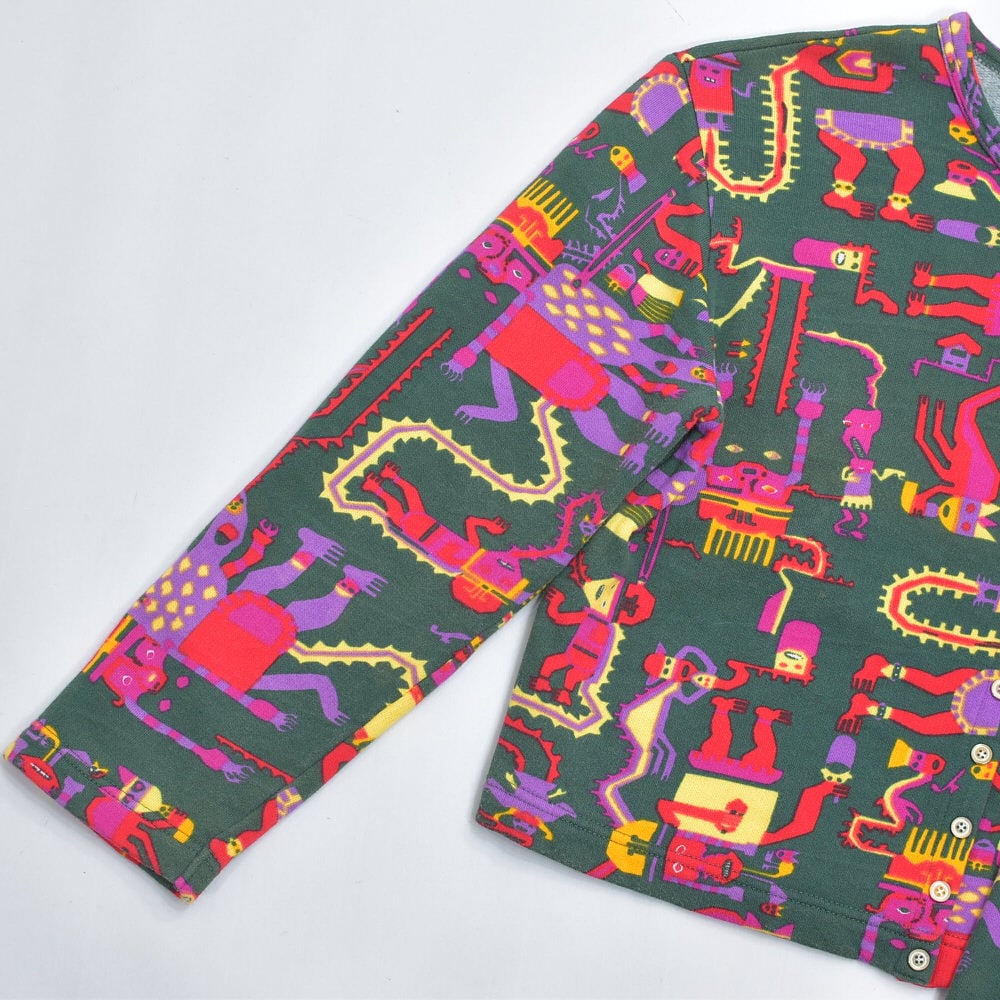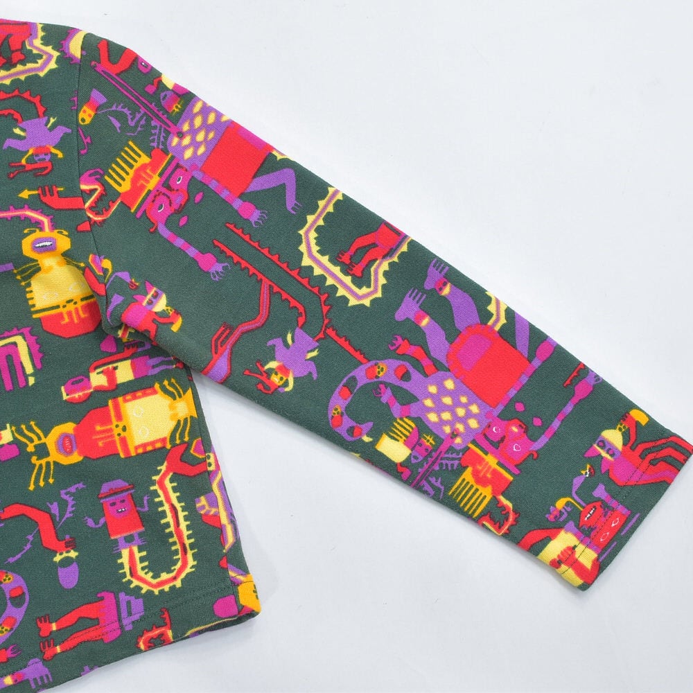 今回届いたのは、ブランドの代名詞である多色使いをあえて抑え、深い森のようなグリーンをベースに異形の神々が踊る、ミステリアスな一着です