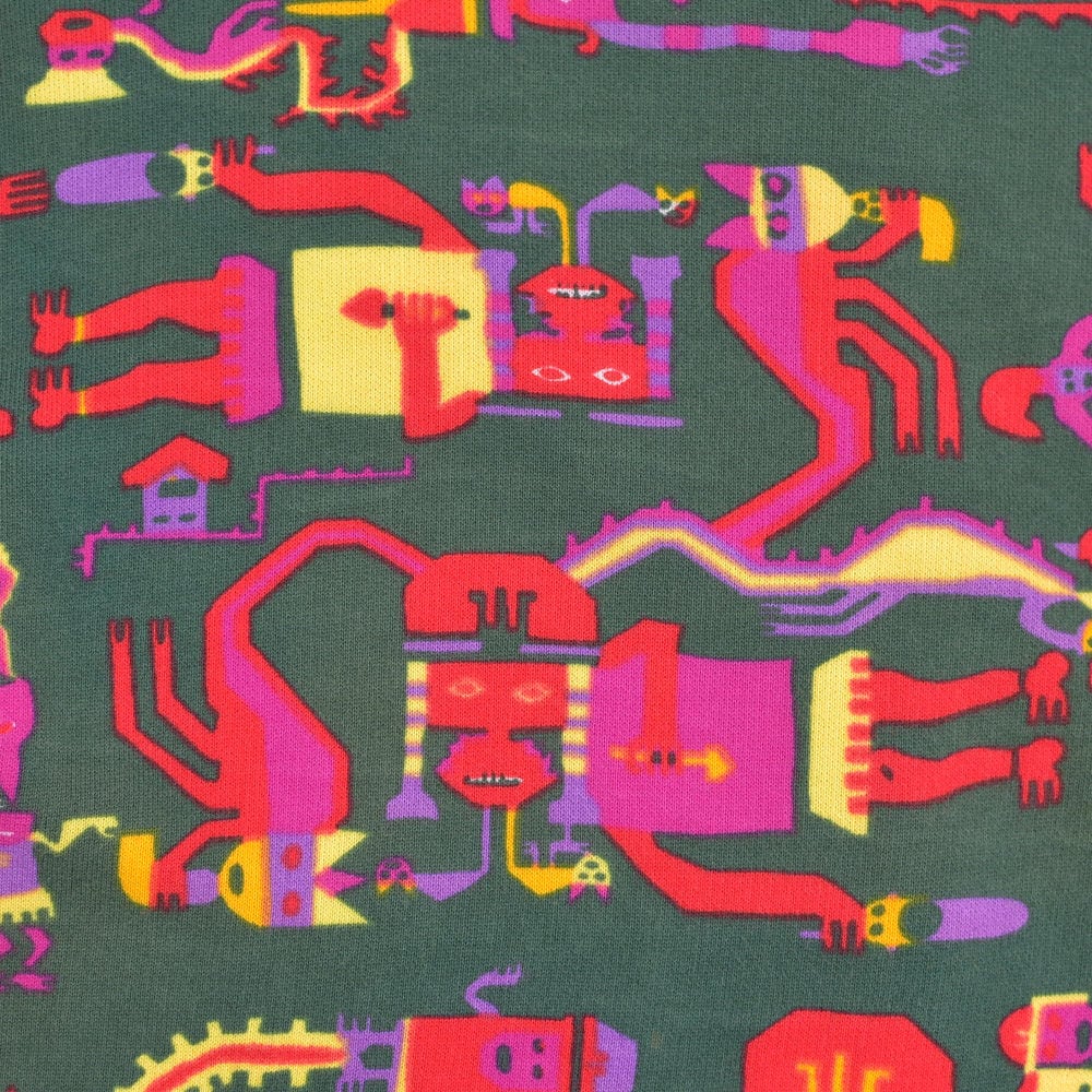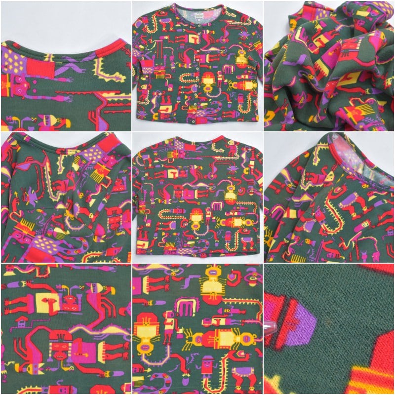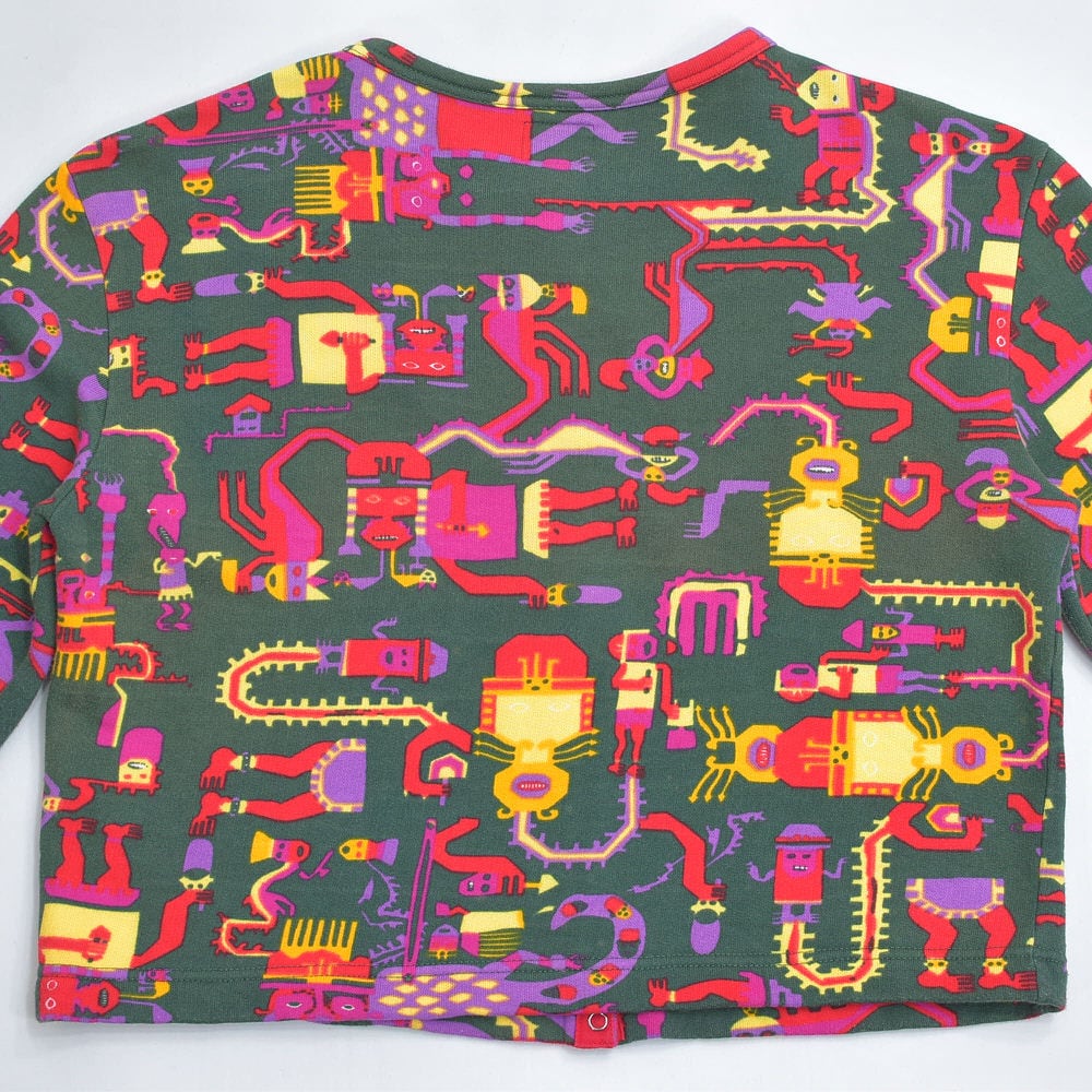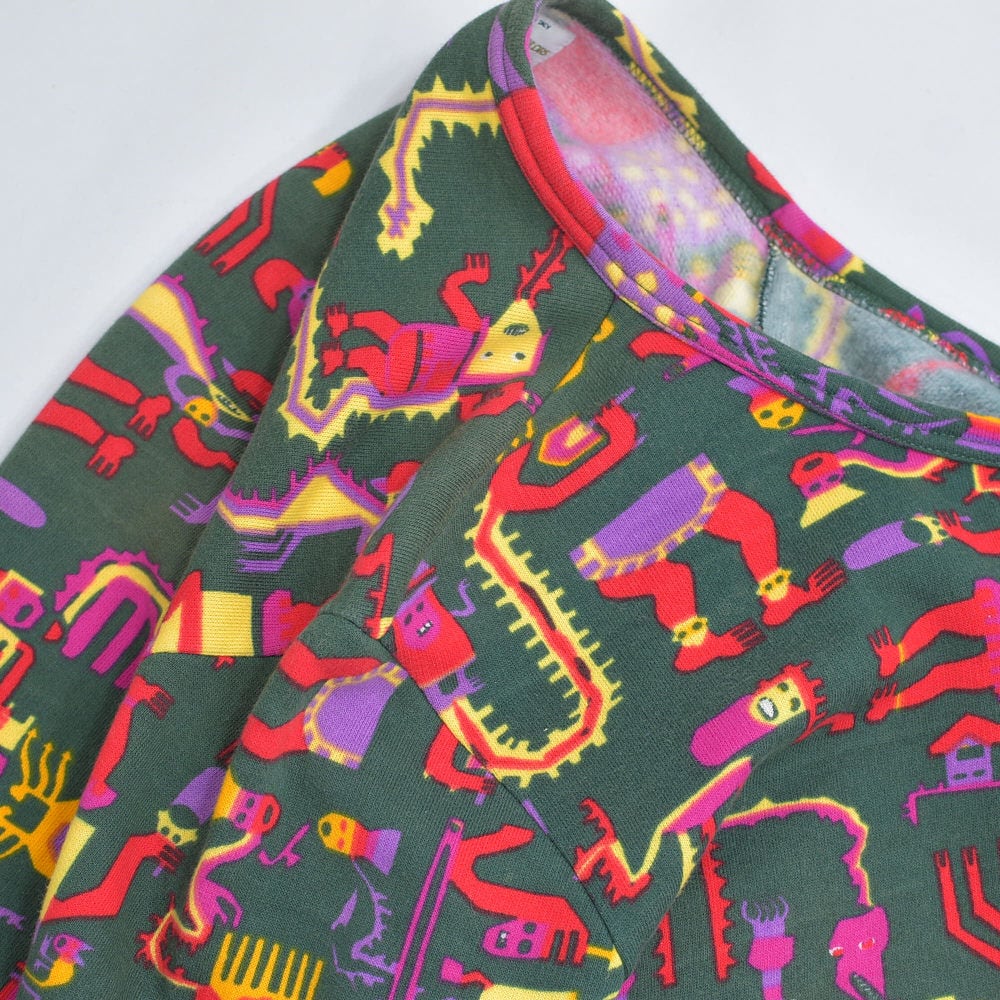 今回届いたのは、ブランドの代名詞である多色使いをあえて抑え、深い森のようなグリーンをベースに異形の神々が踊る、ミステリアスな一着です