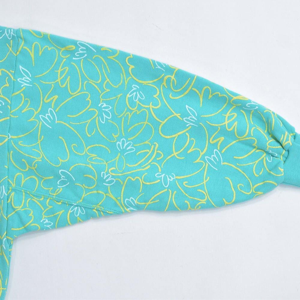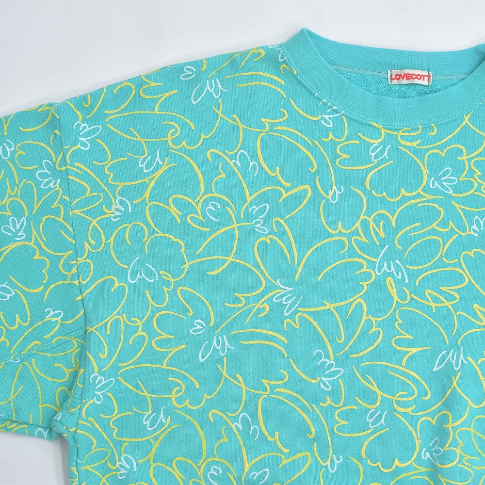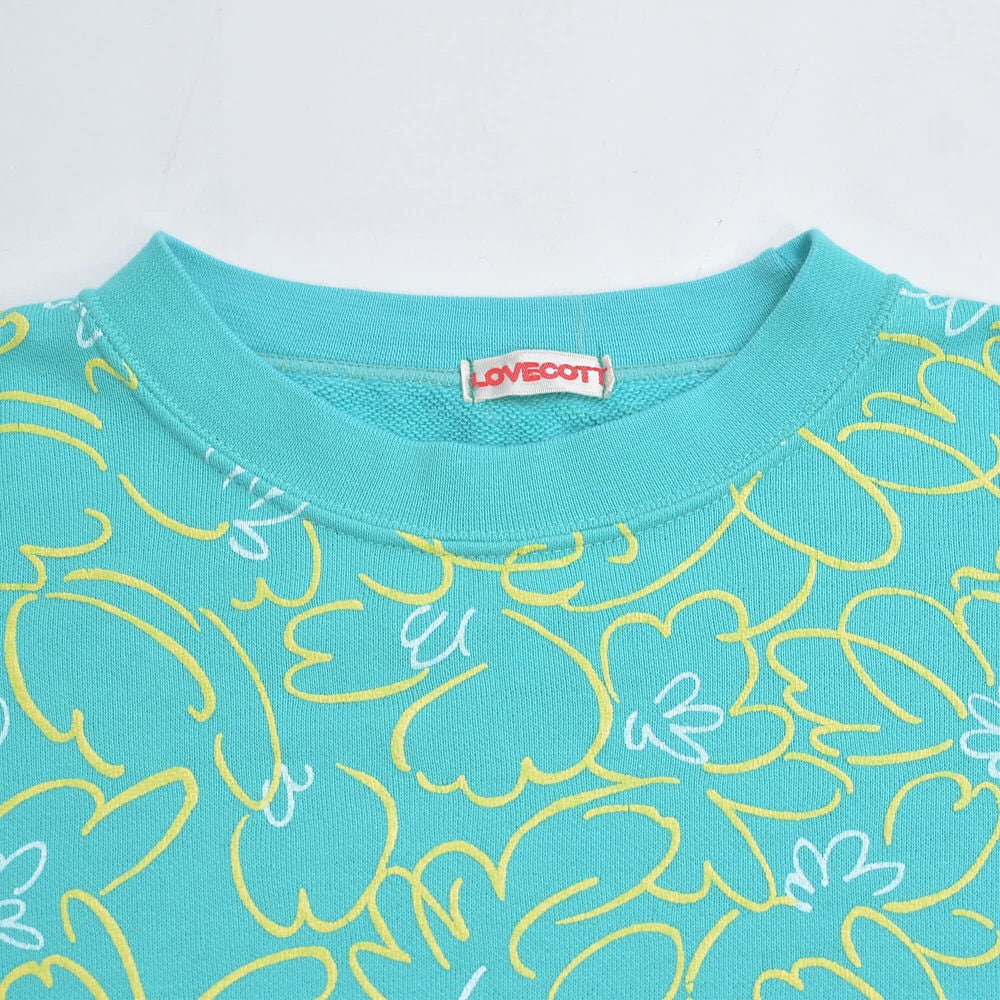 80~90s LOVECOTT ラブコット アートフル フラワー デザイン プルオーバー スウェット トレーナー ターコイズ ジャパンヴィンテージ ビンテージ 古着 レディースL~XL