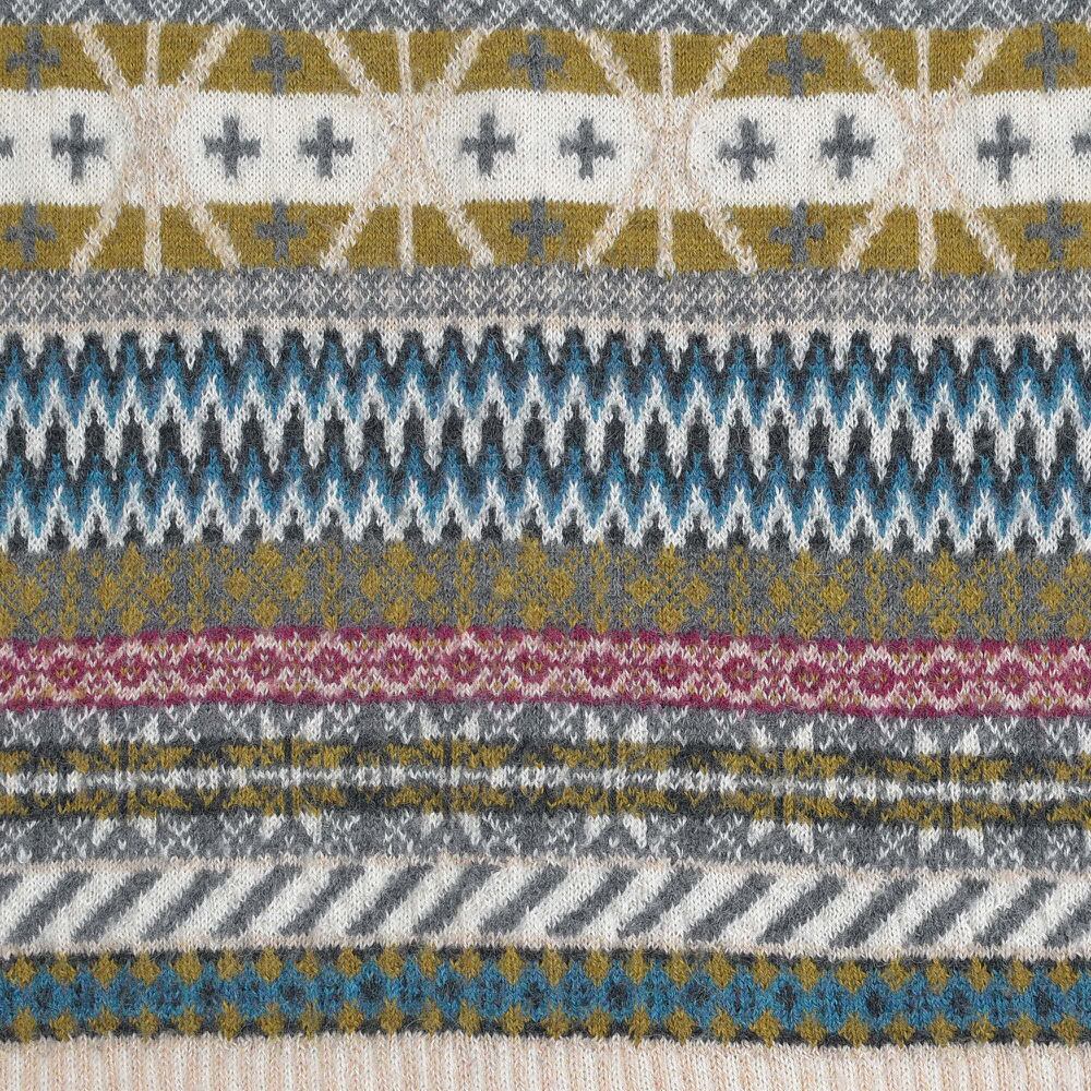 そしてマスタードの柔らかな光が緻密な編み地の中で見事な調和を奏でています