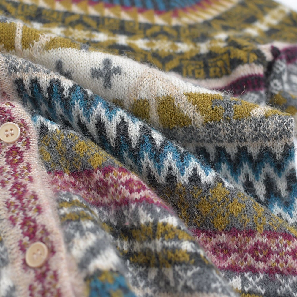 BAMBOO HOUSE バンブーハウス 幾何学模様 フェアアイル 総柄 デザイン アルパカウーファー ニット カーディガン マルチカラー ヴィンテージ ビンテージ 古着 レディースM〜L相当