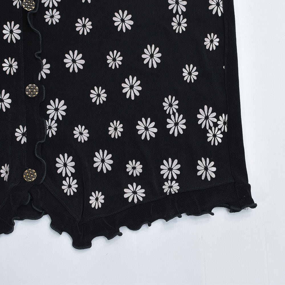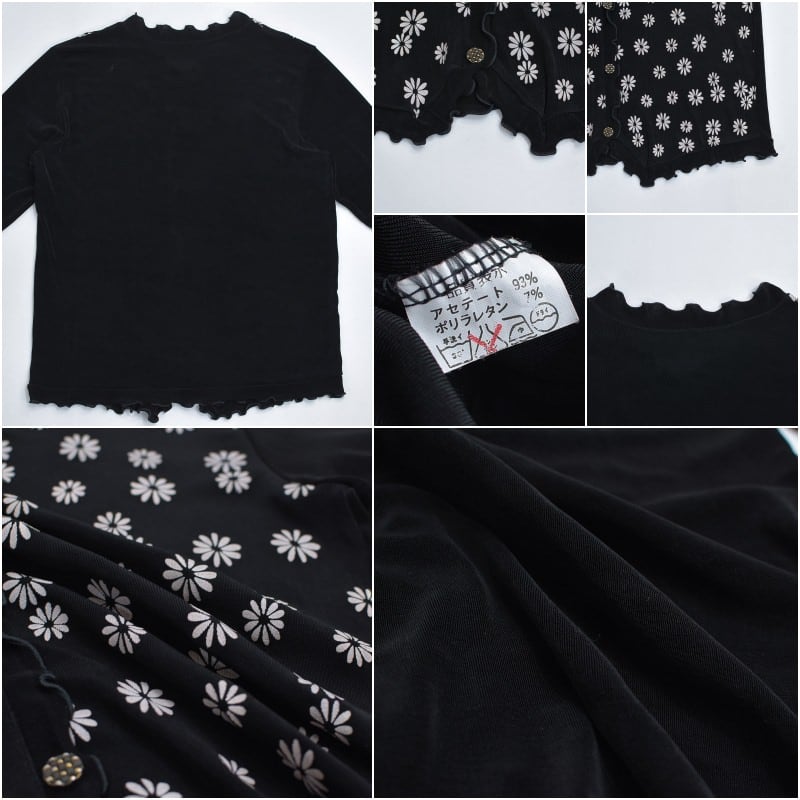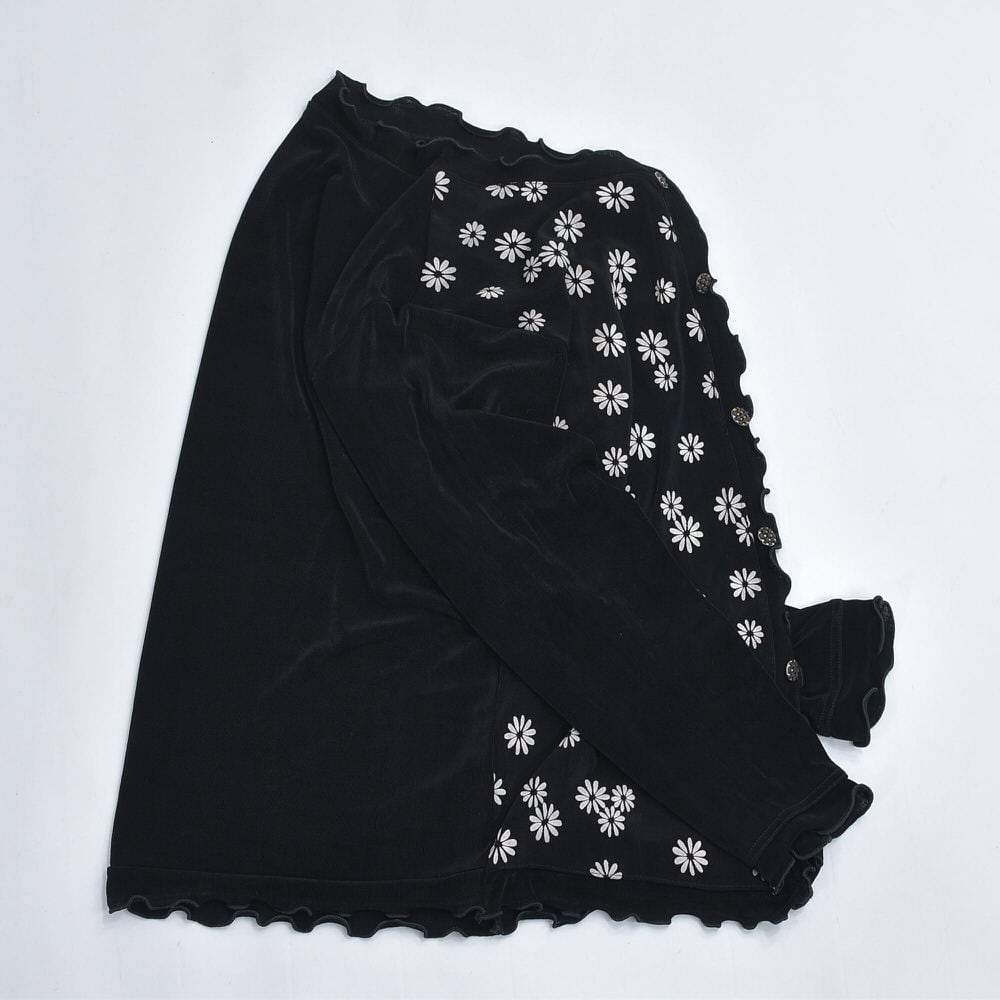 90~00s Flower pattern デイジー柄 プリント メロウステッチ デザイン フェイクカーディガン プルオーバー トップス ジャパンヴィンテージ ビンテージ 古着 レディースL~XL相当