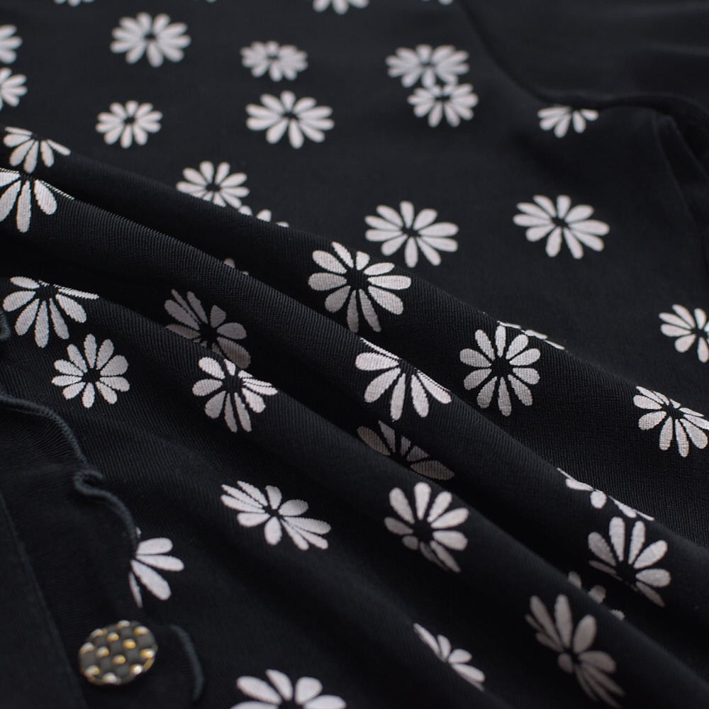可愛らしい花柄も、黒をベースにすることで、ぐっと大人っぽく引き締まった印象になりますね