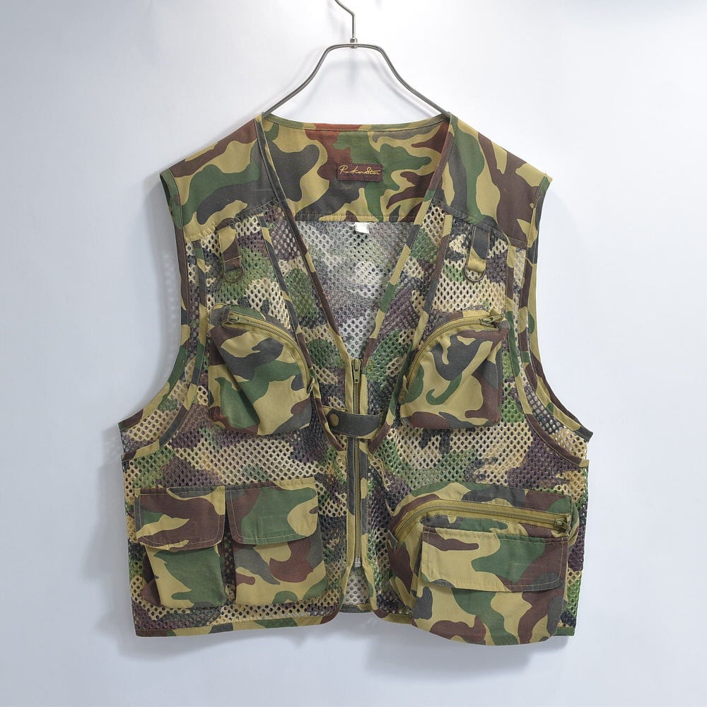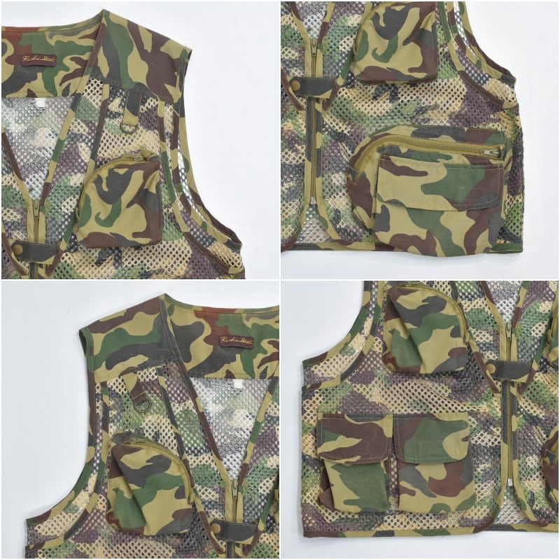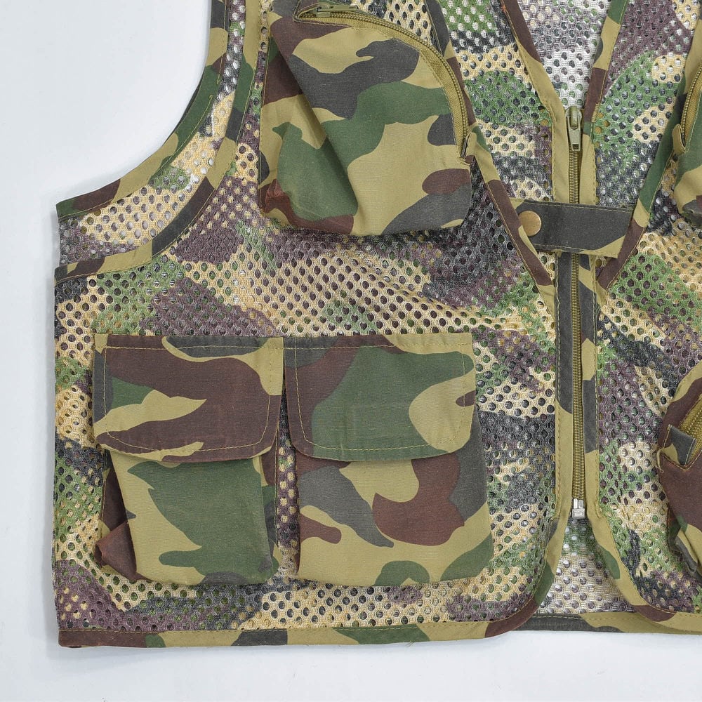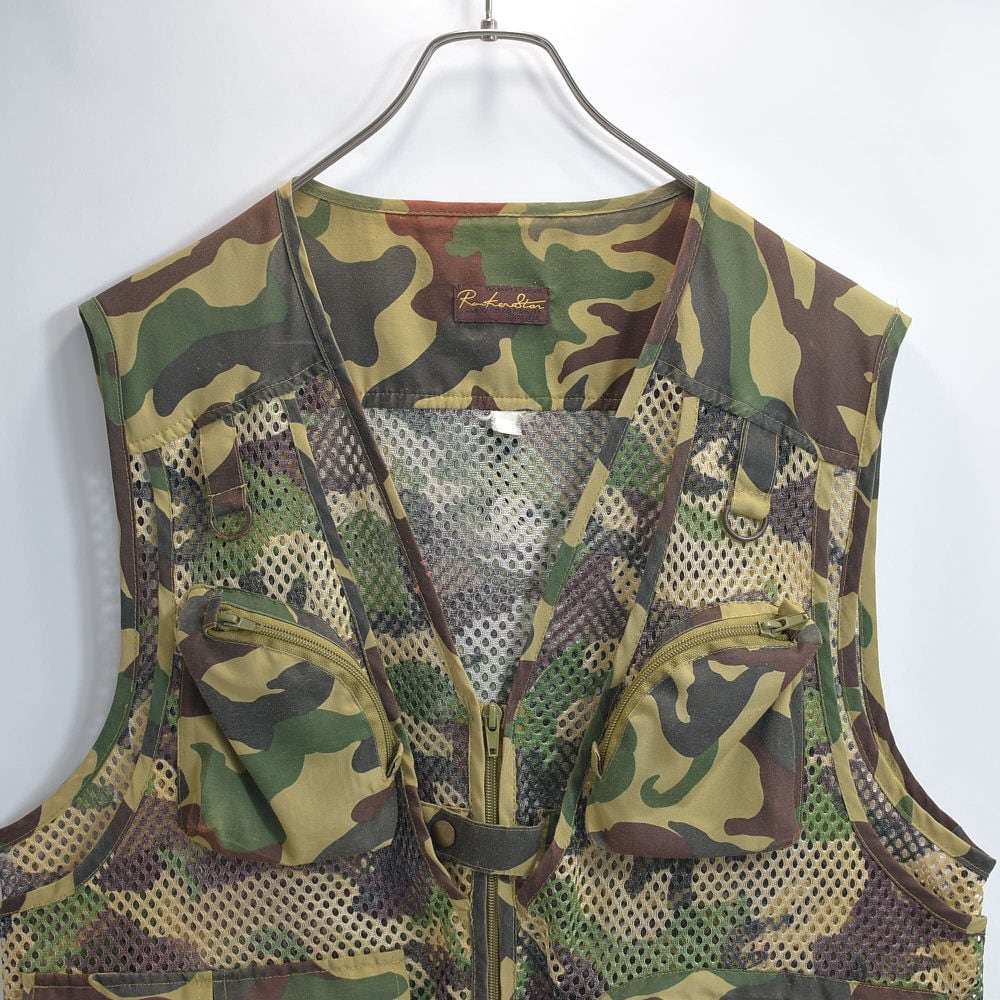 90s~ Rockerstar ウッドランドカモ マルチポケット フィッシング メッシュ ベスト ユーティリティーベスト 迷彩 カモ柄 ヴィンテージ ビンテージ 古着 メンズL~相当