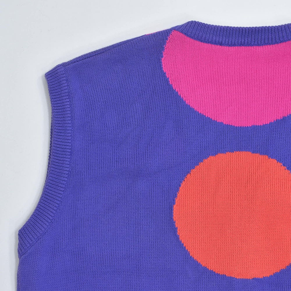 80s〜 VERSACE ヴェルサーチ サイケデリック ポップ アート デザイン コットン ニット 水玉 ドット レトロ ヴィンテージ ビンテージ 古着 メンズL相当