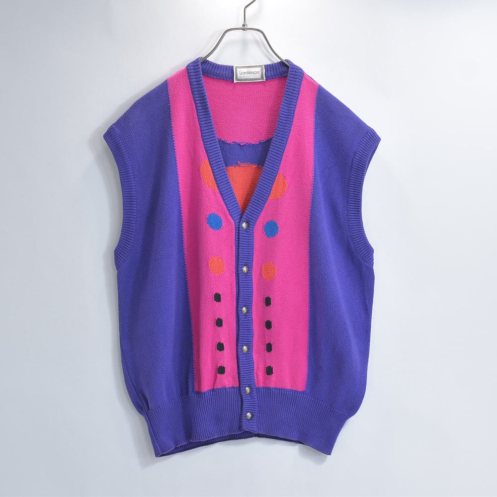 80s~ VERSACE ヴェルサーチ サイケデリック ポップ アート デザイン コットン ニット 水玉 ドット レトロ ヴィンテージ ビンテージ 古着 メンズL相当