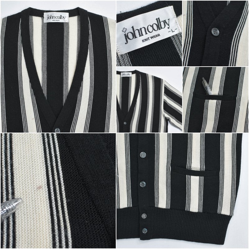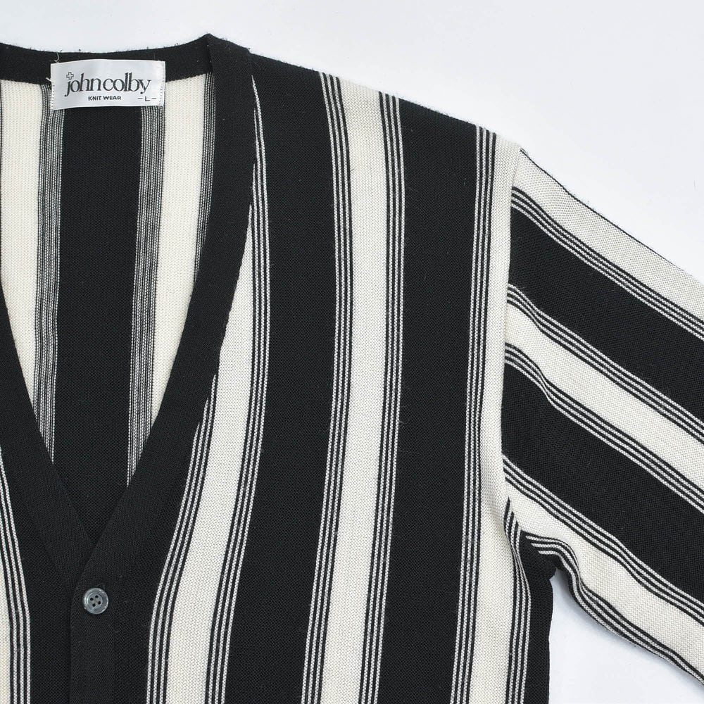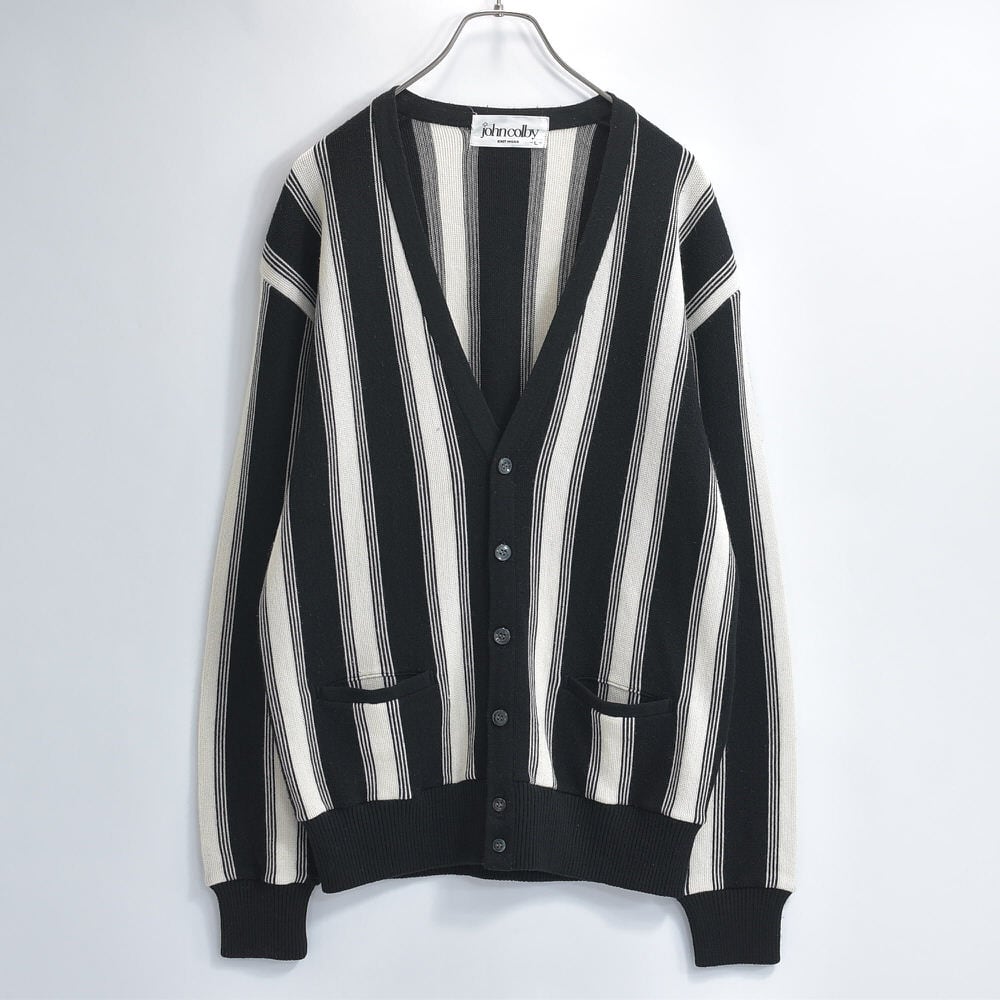 80~90s john colby ジョンコルビー マルチストライプ アクリル ニット カーディガン モノトーン モード セーター ジャパンヴィンテージ ビンテージ 古着 メンズLサイズ