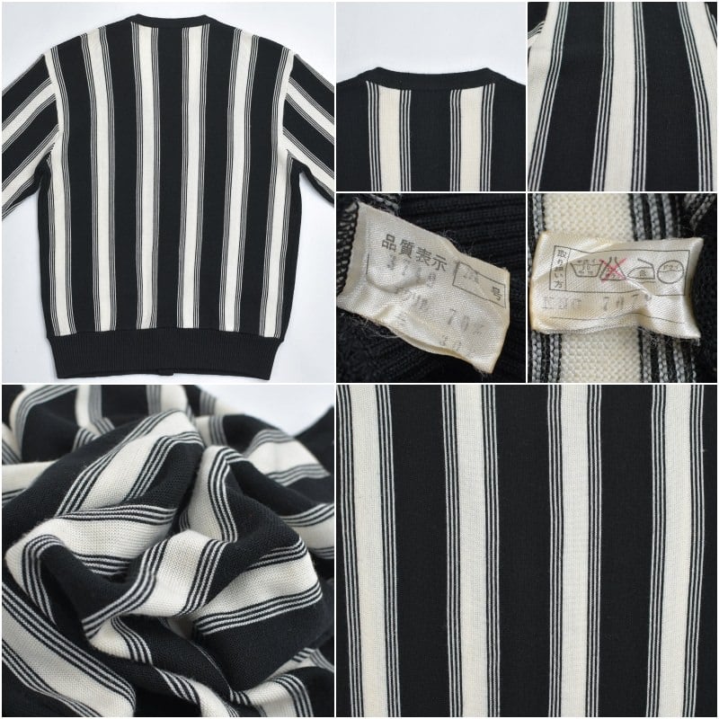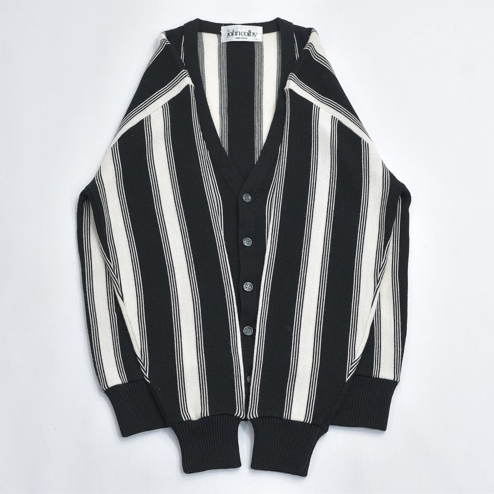 80〜90s john colby ジョンコルビー マルチストライプ アクリル ニット カーディガン モノトーン モード セーター ジャパンヴィンテージ ビンテージ 古着 メンズLサイズ