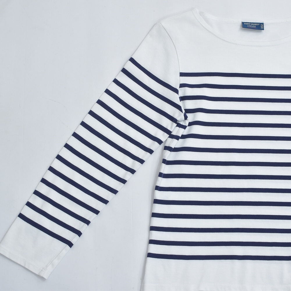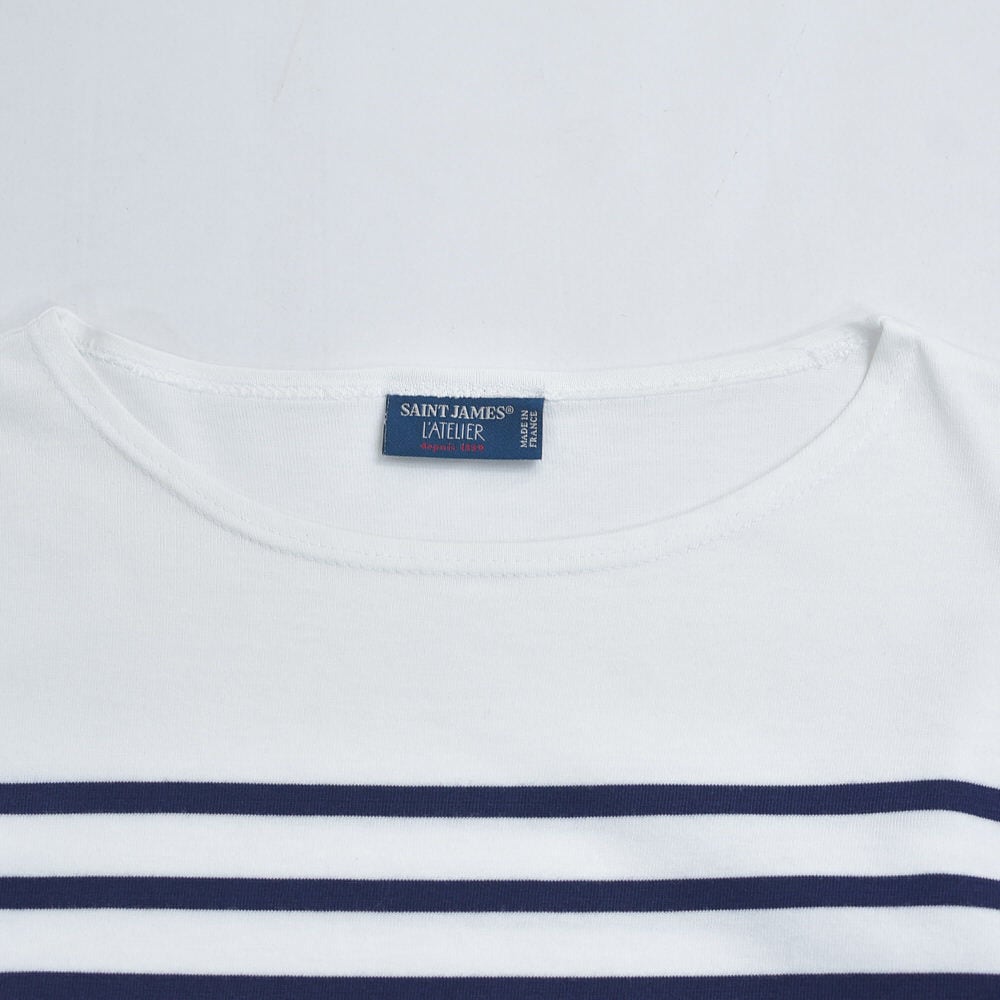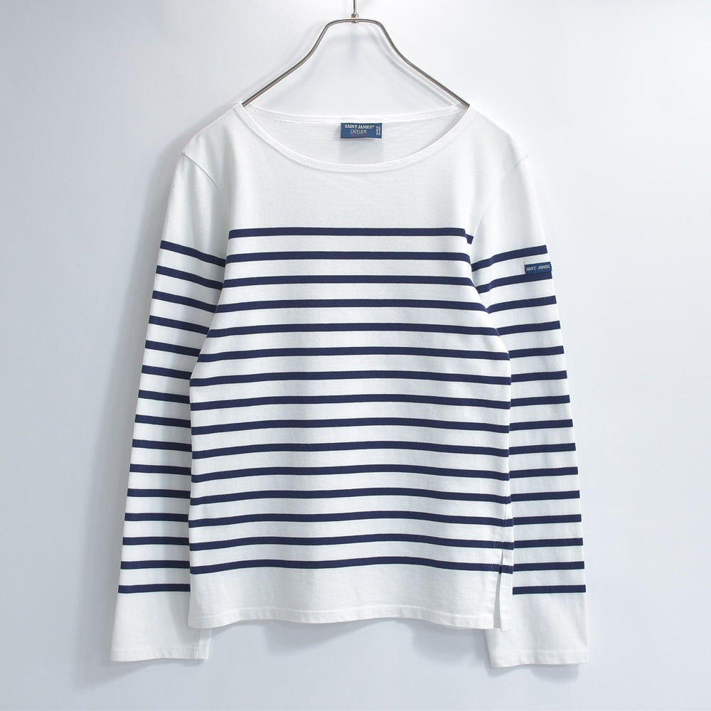 フランス製 SAINT JAMES セントジェームス ラトリエ ボーダー カットソー バスクシャツ ホワイト ネイビー フレンチ ヴィンテージ ビンテージ ヨーロッパ古着 レディースS相当