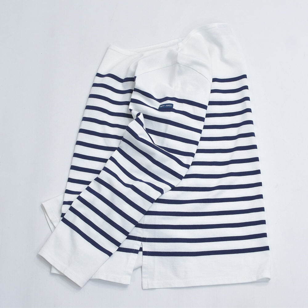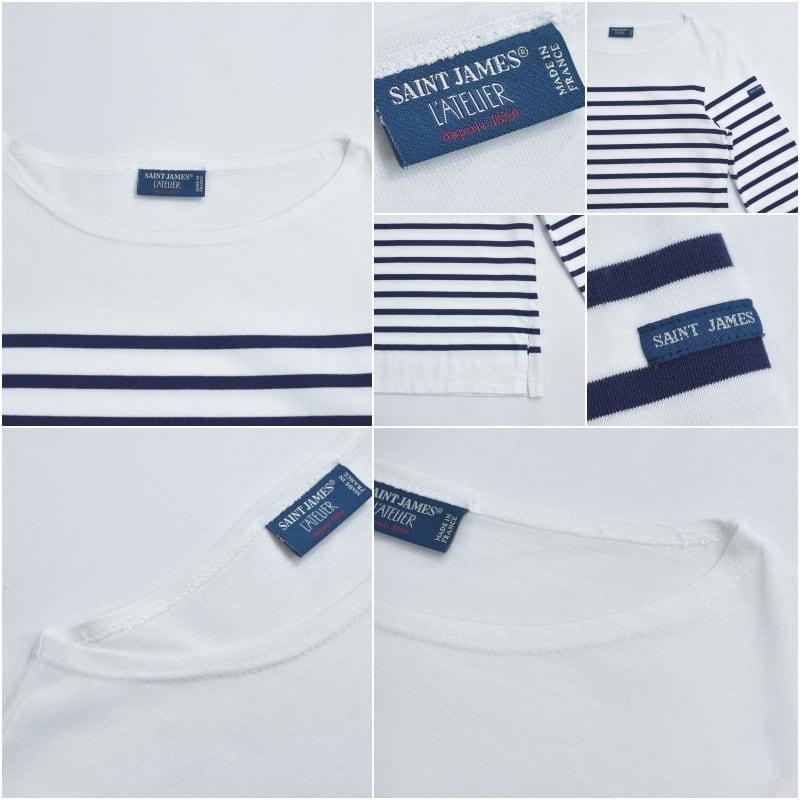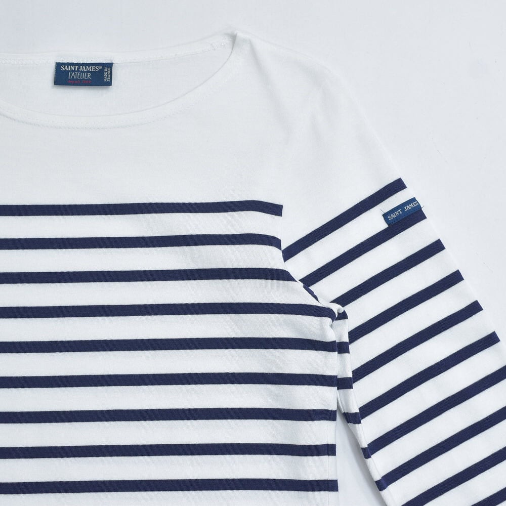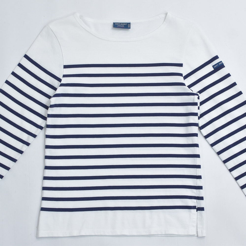 フランス製 SAINT JAMES セントジェームス ラトリエ ボーダー カットソー バスクシャツ ホワイト ネイビー フレンチ ヴィンテージ ビンテージ ヨーロッパ古着 レディースS相当