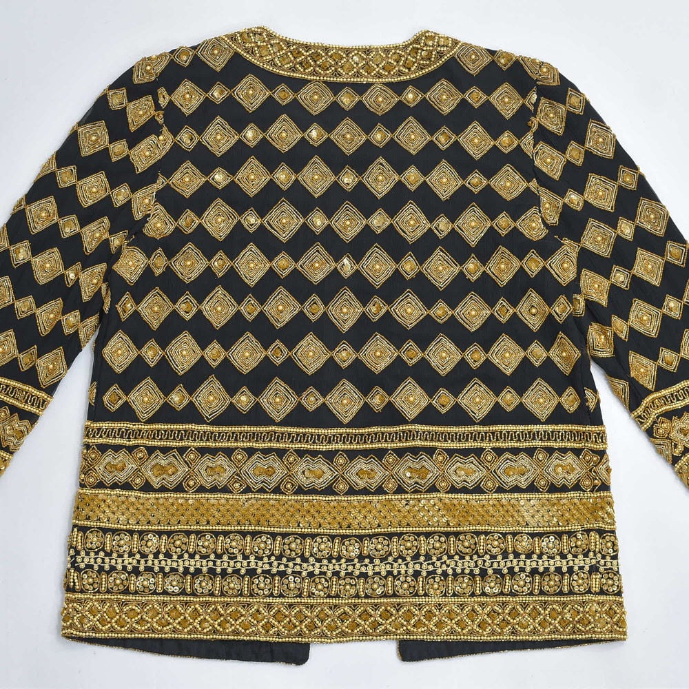 80~90s ADRIANNA PAPELL アドリアナパペル デコレーション デザイン ノーカラー シルク ジャケット シルク ビーズ スパンコール ヴィンテージ ビンテージ 古着 レディースLサイズ