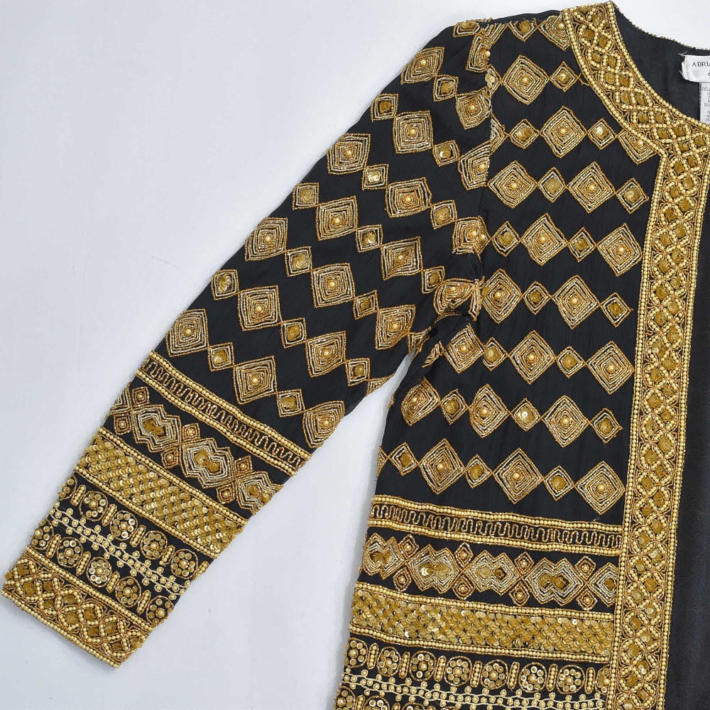 80〜90s ADRIANNA PAPELL アドリアナパペル デコレーション デザイン ノーカラー シルク ジャケット シルク ビーズ スパンコール ヴィンテージ ビンテージ 古着 レディースLサイズ
