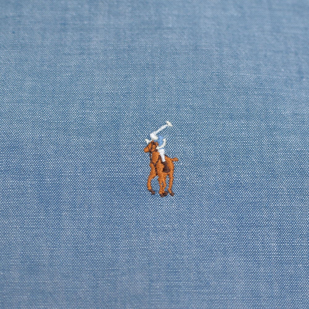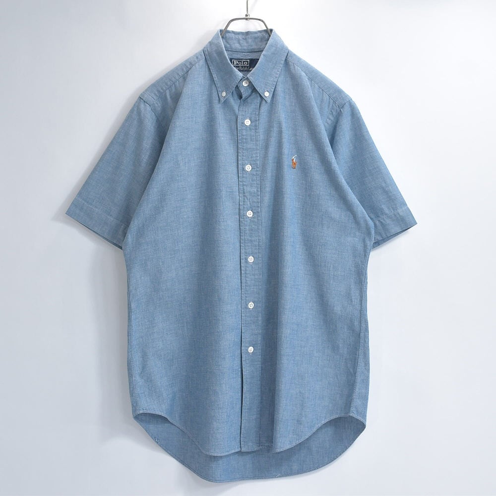 90〜00s Polo by Ralph Lauren ポロラルフローレン シャンブレー ポニー刺繍 半袖 ボタンダウン シャツ トップス ブルー ヴィンテージ ビンテージ 古着 メンズM相当