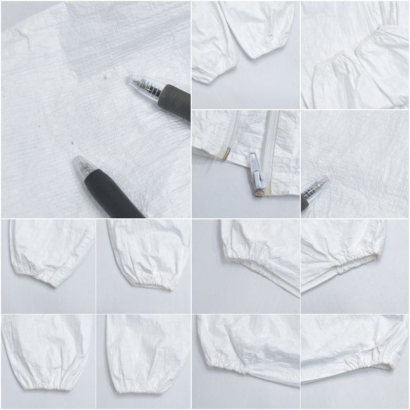 ・襟のネームタグから、タイベック(高密度ポリエチレン不織布)だと判断できます