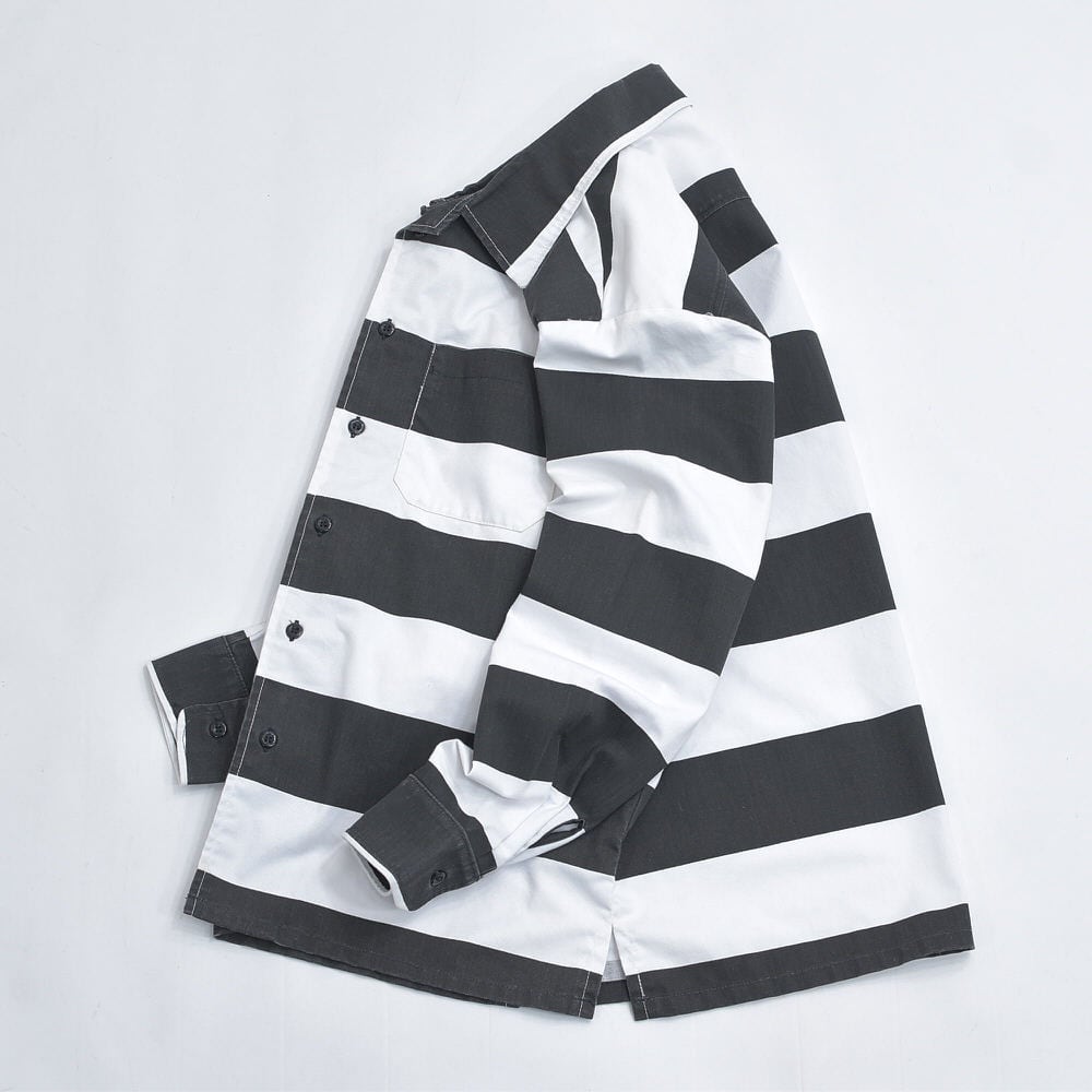 90s~ WY BRAND プリズナー ボーダー ワークシャツ ジャケット 太縞 ボーダー 囚人 長袖シャツ ヴィンテージ ビンテージ ホワイト ブラック アメリカ USA 古着 メンズL相当