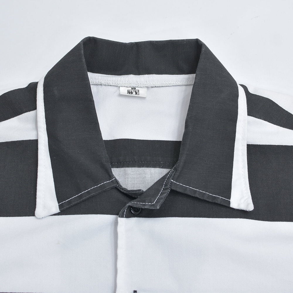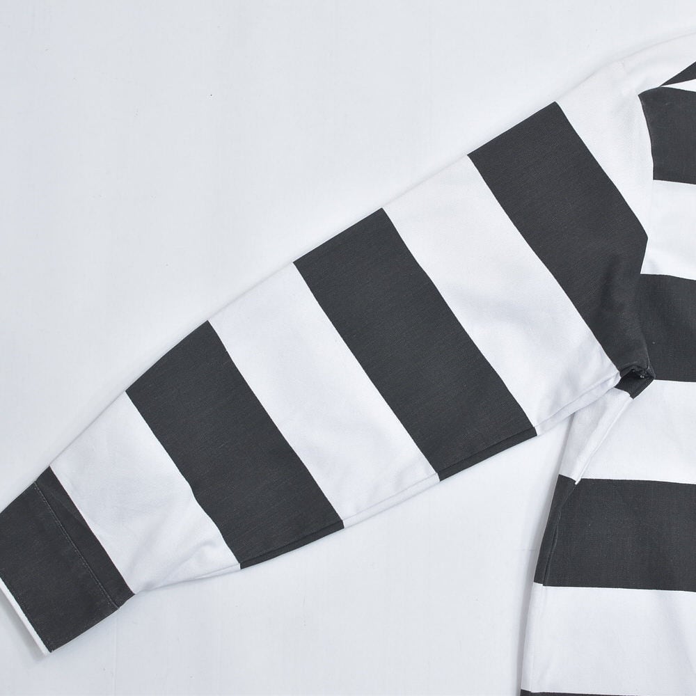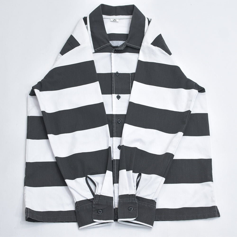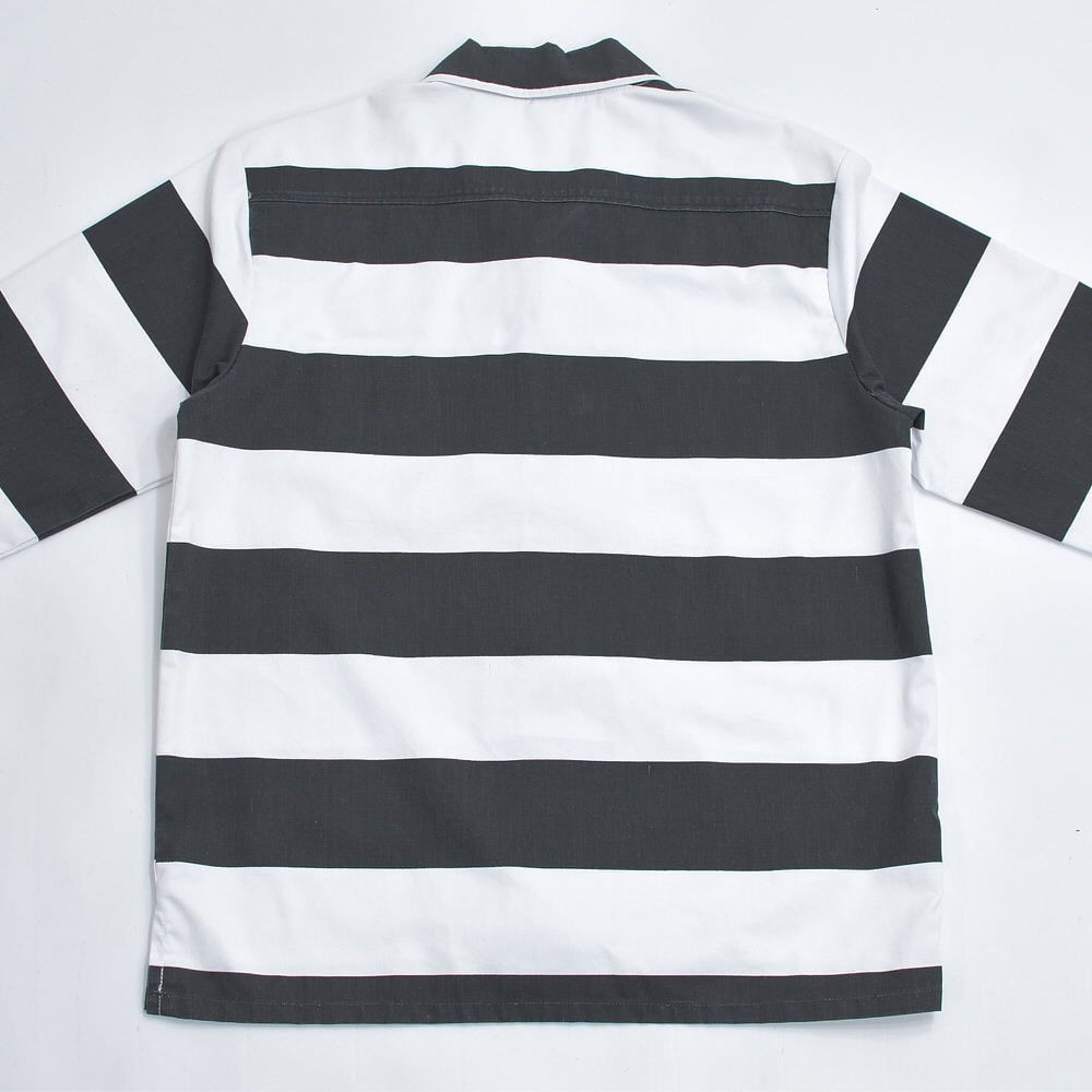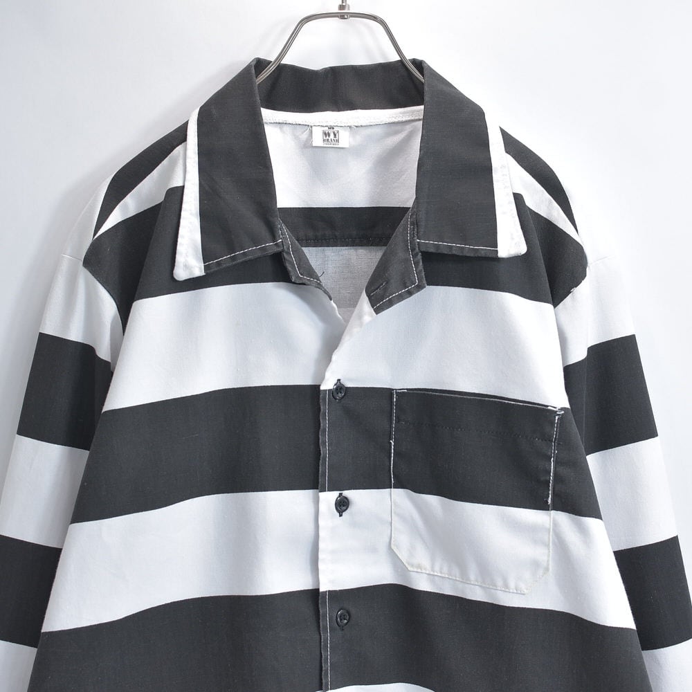 90s〜 WY BRAND プリズナー ボーダー ワークシャツ ジャケット 太縞 ボーダー 囚人 長袖シャツ ヴィンテージ ビンテージ ホワイト ブラック アメリカ USA 古着 メンズL相当