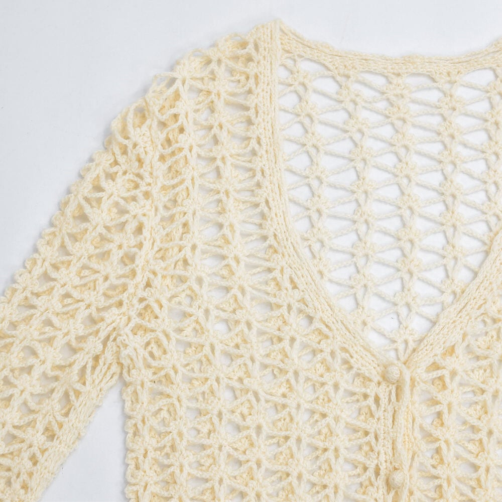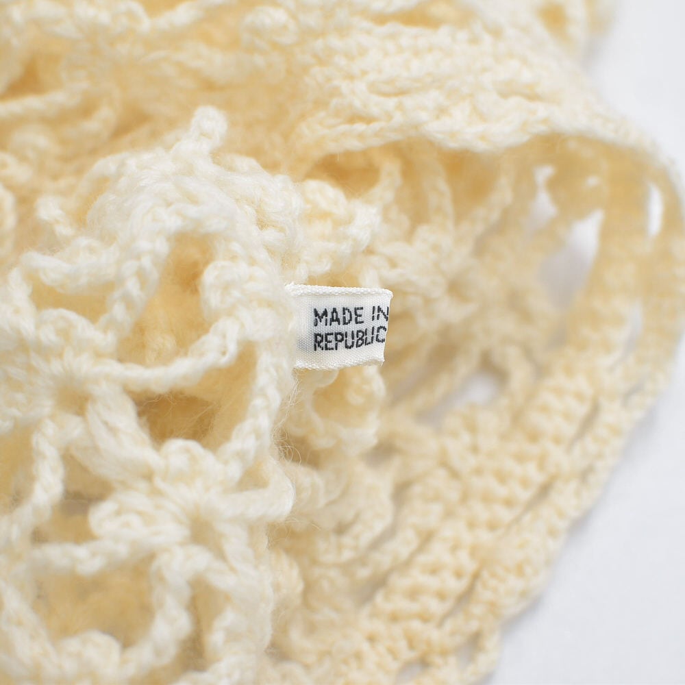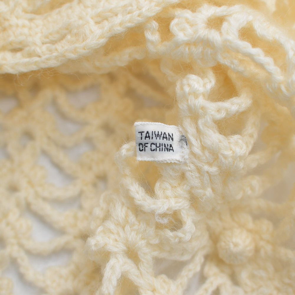 70〜80s Crochet Knit Cardigan クロシェニット 透かし編み Vネック ロングカーディガン ヴィンテージ ビンテージ アイボリー 古着 レディースL相当