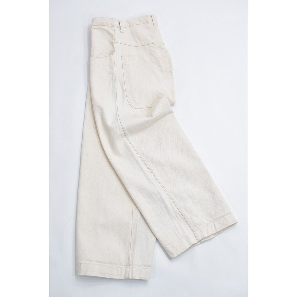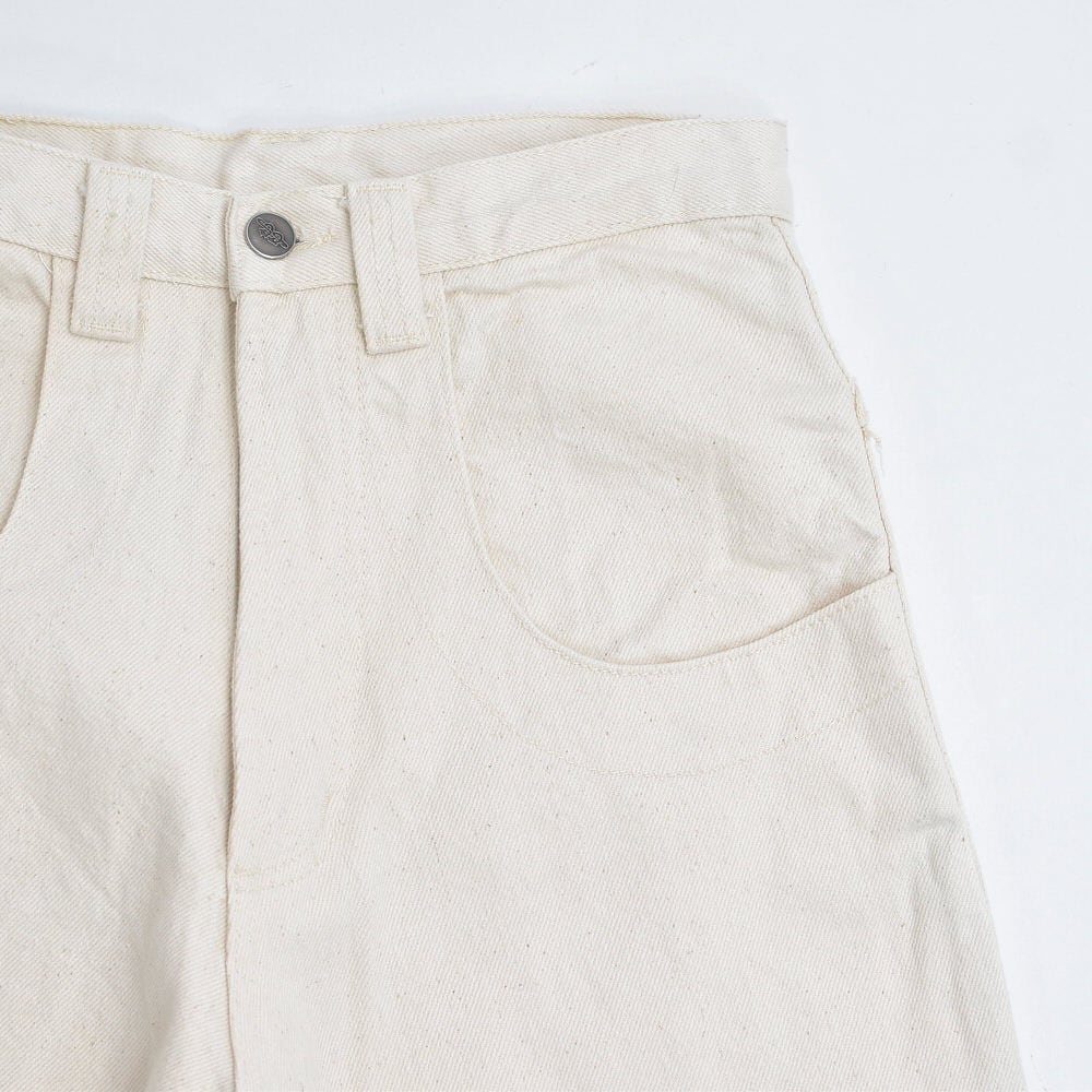 ガシッとしたアメリカ製のキャンバス地なのに、この柔らかなオフホワイトの色合いと独特なカッティングのおかげで、とっても優しい表情に仕上がっていますね