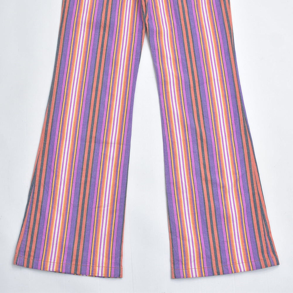 90~00s INTERNATIONAL WORLD JEANS マルチストライプ デザイン スリムシルエット フレアパンツ ヴィンテージ ビンテージ 古着 レディースW69cm