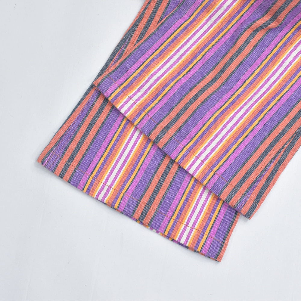 パープルをベースにオレンジやイエローが踊るマルチカラーは、穿くだけで心の彩度まで上げてくれそうですね