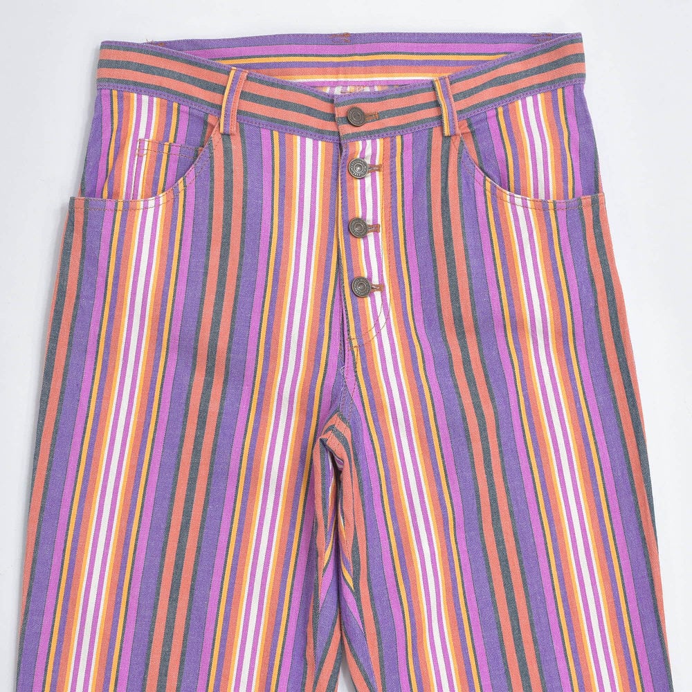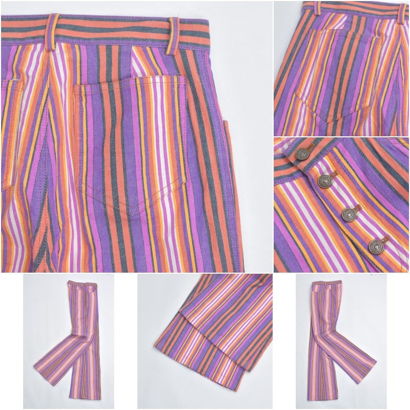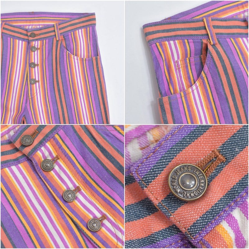 90〜00s INTERNATIONAL WORLD JEANS マルチストライプ デザイン スリムシルエット フレアパンツ ヴィンテージ ビンテージ 古着 レディースW69cm