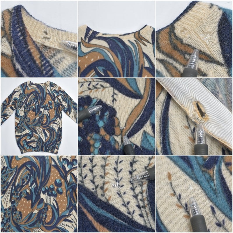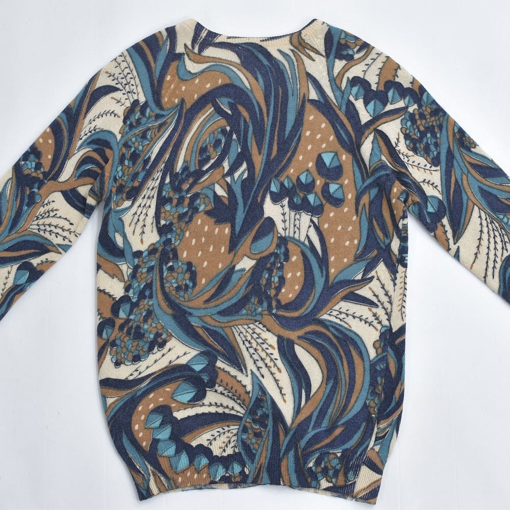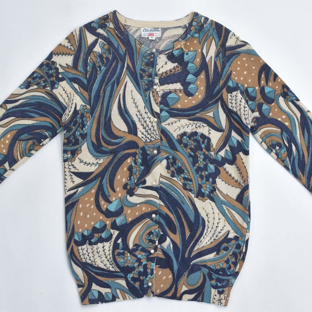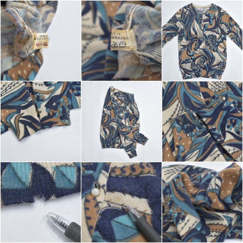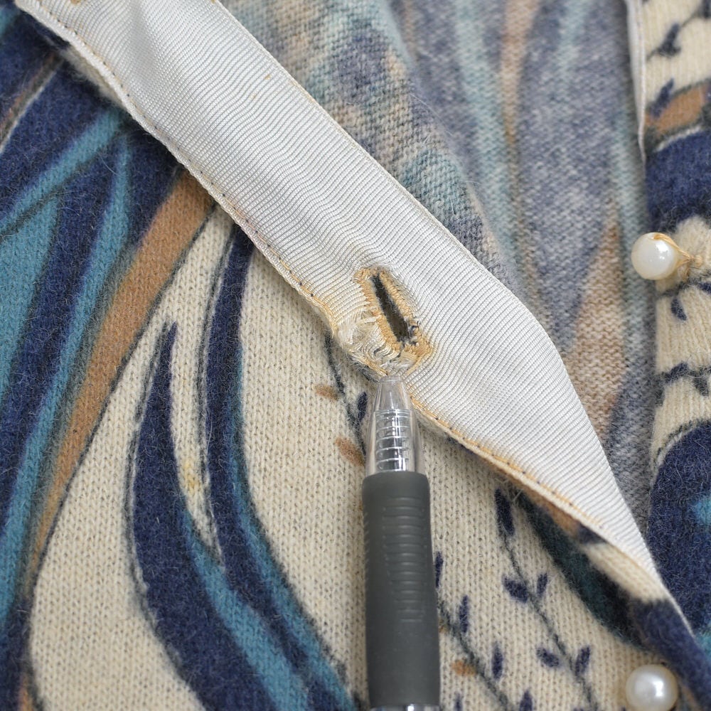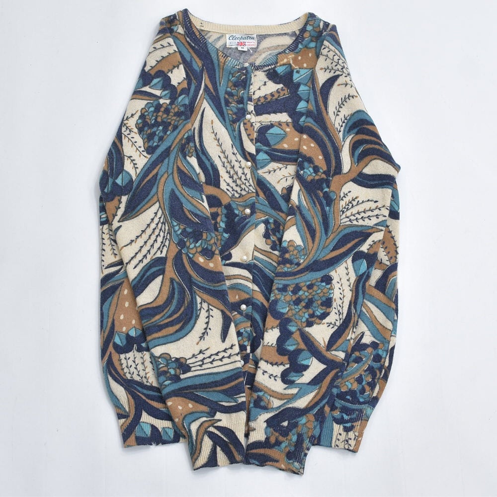 80〜90s Cleopatra アンティーク調 ボタニカルパターン アンゴラブレンド ラムウール 総柄 ニット カーディガン ヴィンテージ ビンテージ 古着 レディースMサイズ