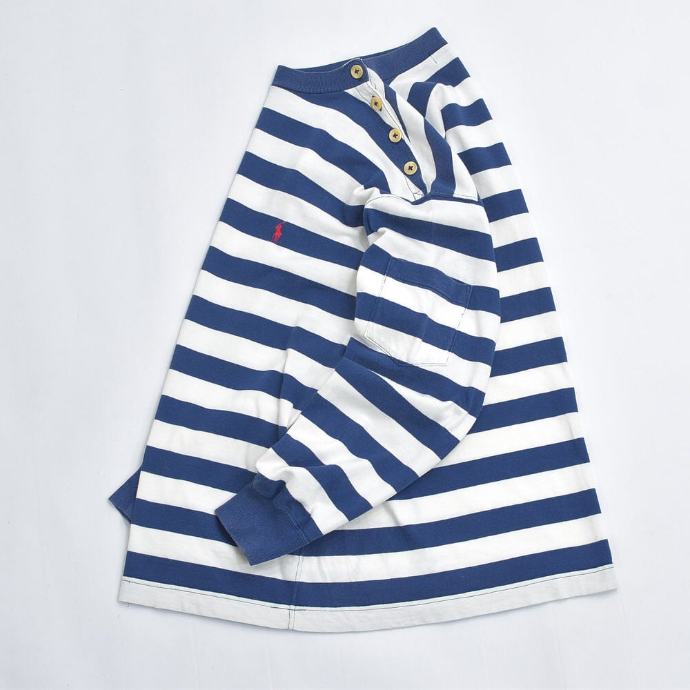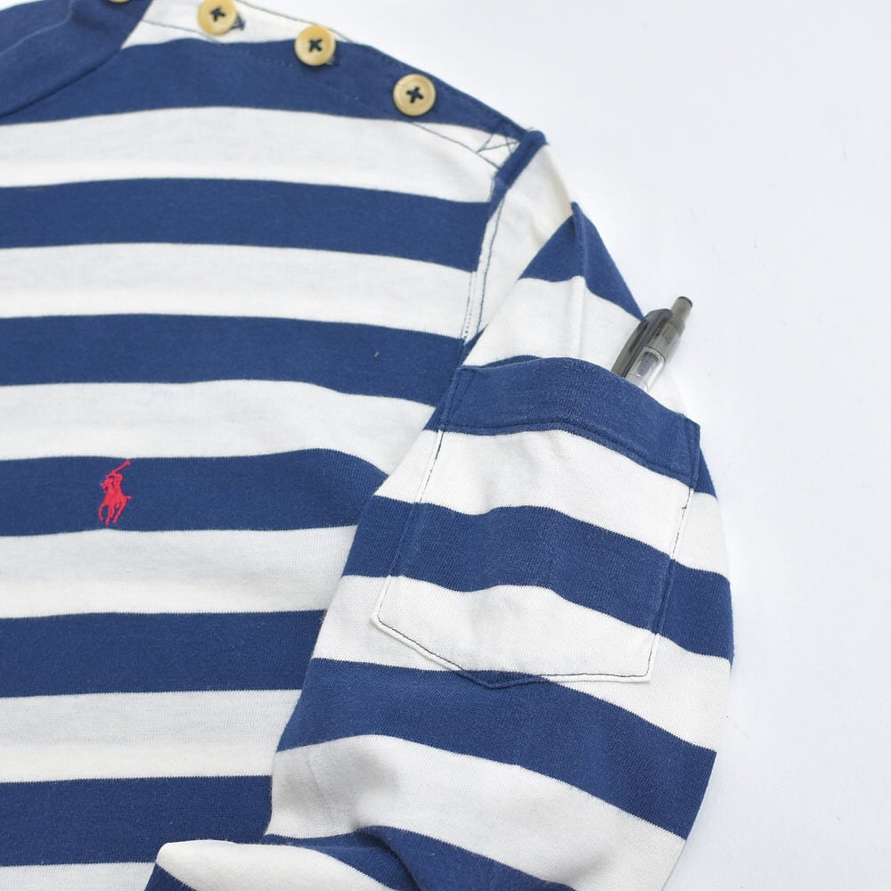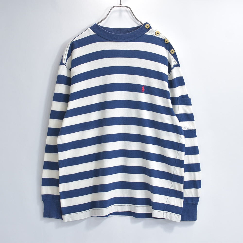 90s~ Ralph Lauren ラルフローレン インパクト21企画 ボーダー Tシャツ 長袖 コットン 肩ボタン 袖ポケット ヴィンテージ ビンテージ 古着 レディースMサイズ