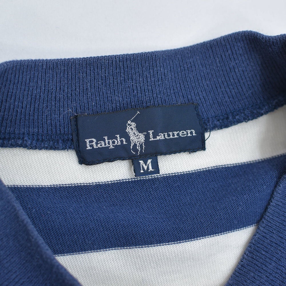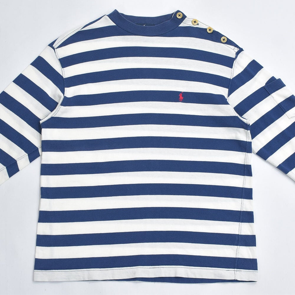 90s〜 Ralph Lauren ラルフローレン インパクト21企画 ボーダー Tシャツ 長袖 コットン 肩ボタン 袖ポケット ヴィンテージ ビンテージ 古着 レディースMサイズ