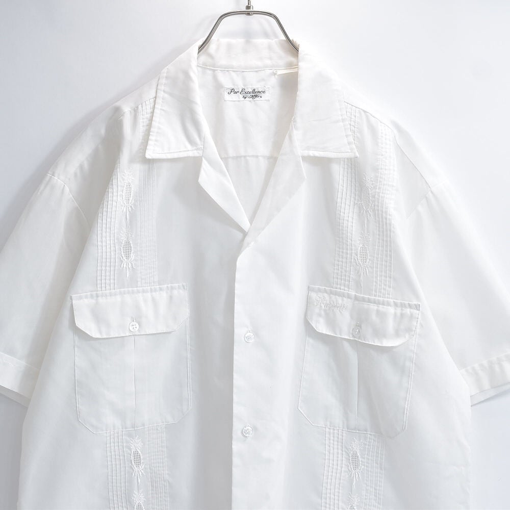 80~90s Par Excellence by MJG パーエクセレンス 刺繍 ピンタック ハワイ キューバシャツ グァジャベーラ ヴィンテージ ビンテージ 古着 メンズL~相当