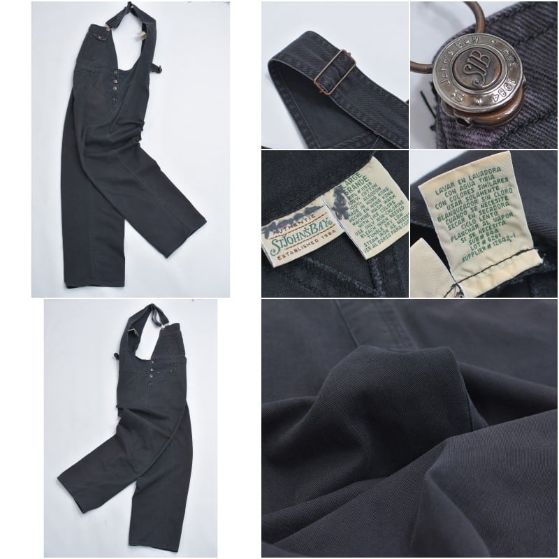 80~90s St John's Bay セントジョンズベイグッドフェード ブラック コットンツイル オーバーオール サロペット ヴィンテージ ビンテージ USA アメリカ古着 メンズLサイズ