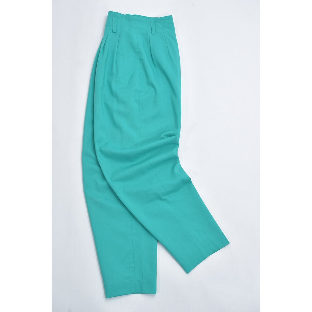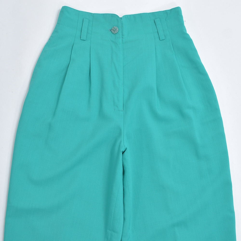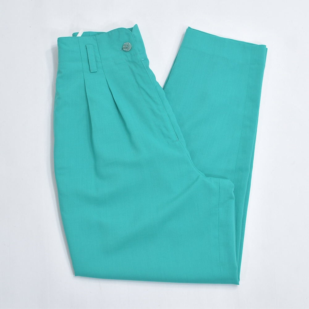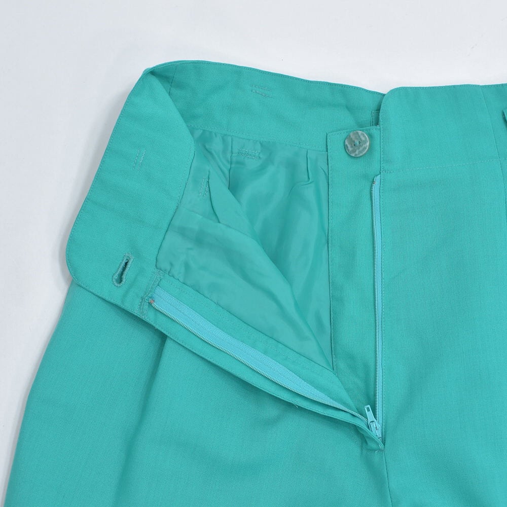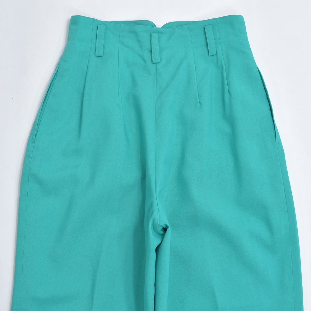 80s~90s GRAN JOUE デザイン アトリエ ジョイ 2タック ハイウエスト スラックス 裏地付き パンツ ターコイズ ジャパンヴィンテージ ビンテージ 古着 レディースW67cm